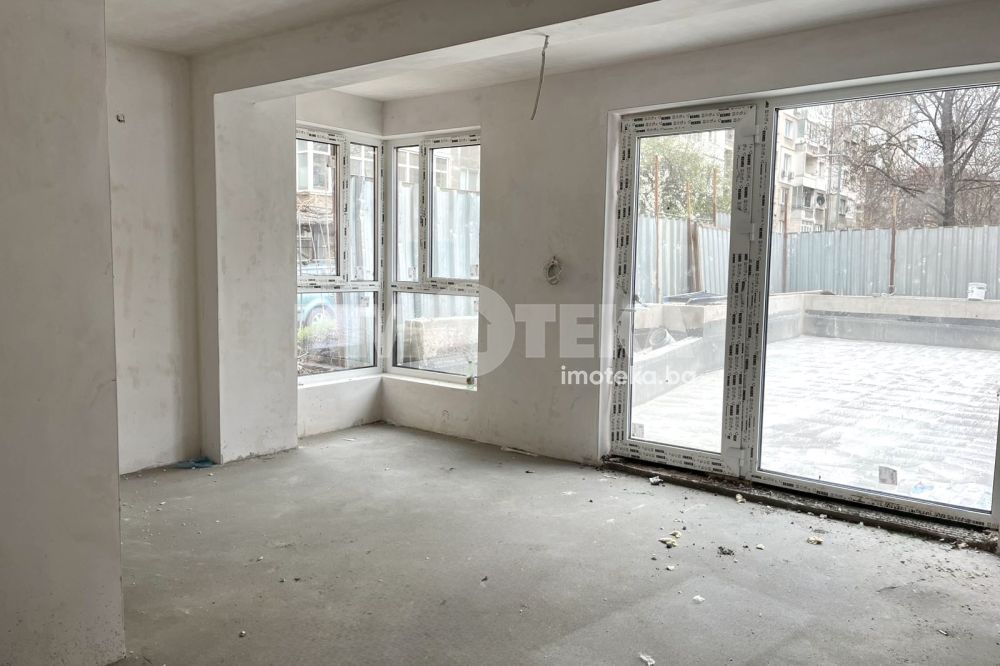 Компактен южен партерен апартамент, със застроена площ от 35,25 кв.м., състоящ се от дневна с кухненски бокс и баня с тоалетна. Апартаментът е вътрешен, светъл и е с отделен вход от страната на вътрешния затворен двор на кооперацията. Към него има прилежащ голям партерен гараж, с площ 29,55 кв.м.,
