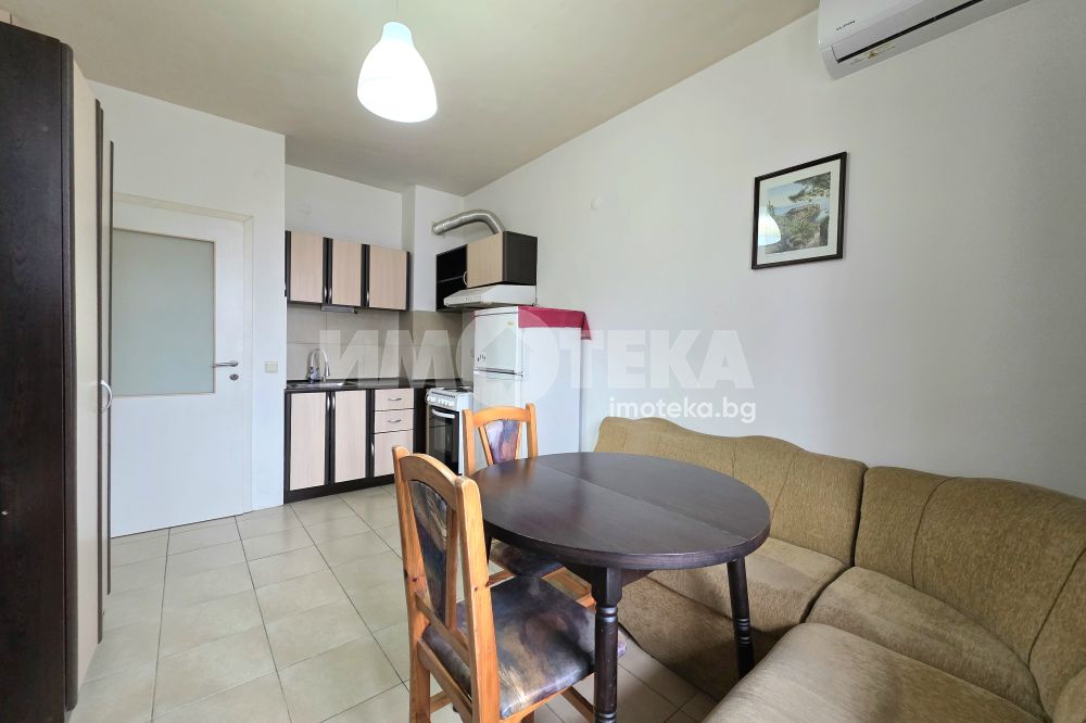Двустаен апартамент състоящ се от коридор, дневна с кухненски бокс, спалня, баня с тоалетна и балкон на който се излиза от двете помещения. Изложението е запад/север, отоплението е на ТЕЦ и климатик. Имотът е със статут на ателие за живеене и е със застроена площ 43 кв.м.