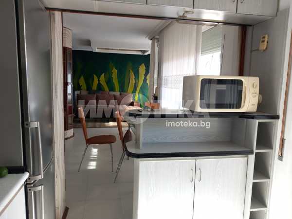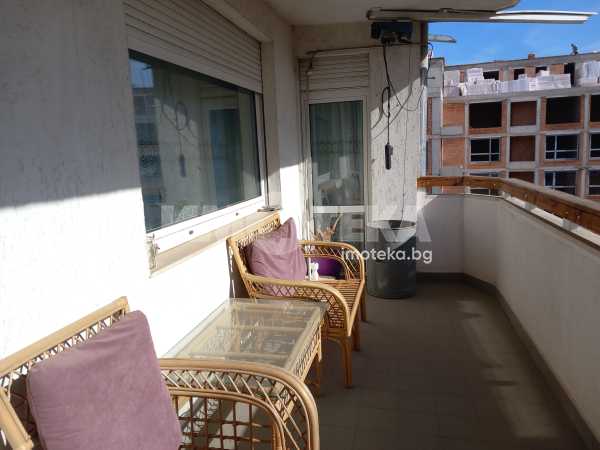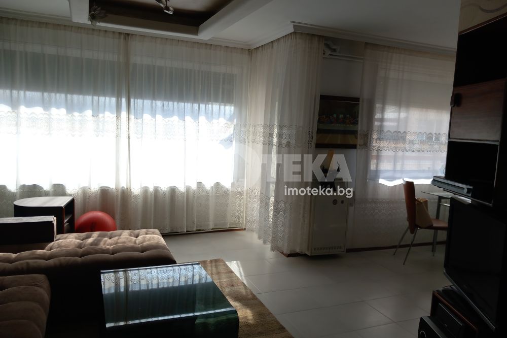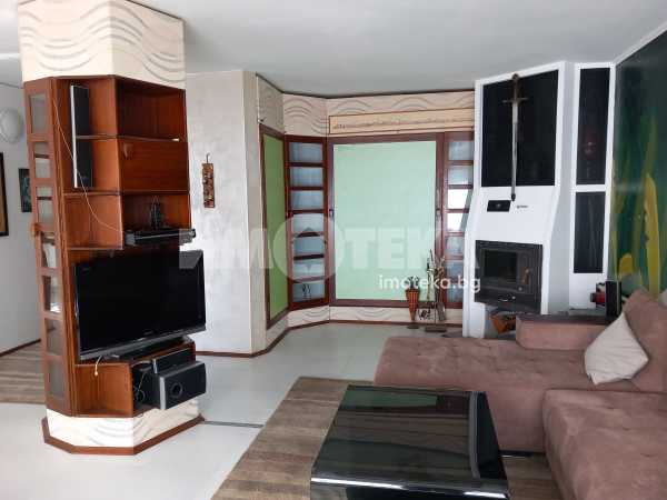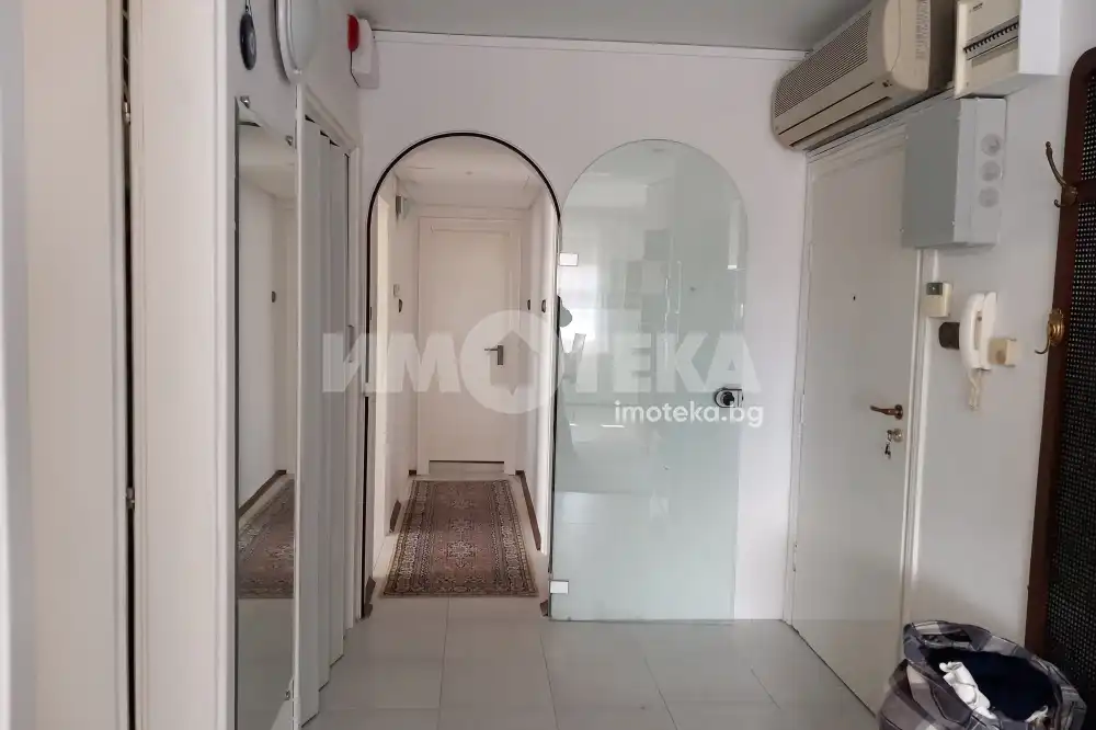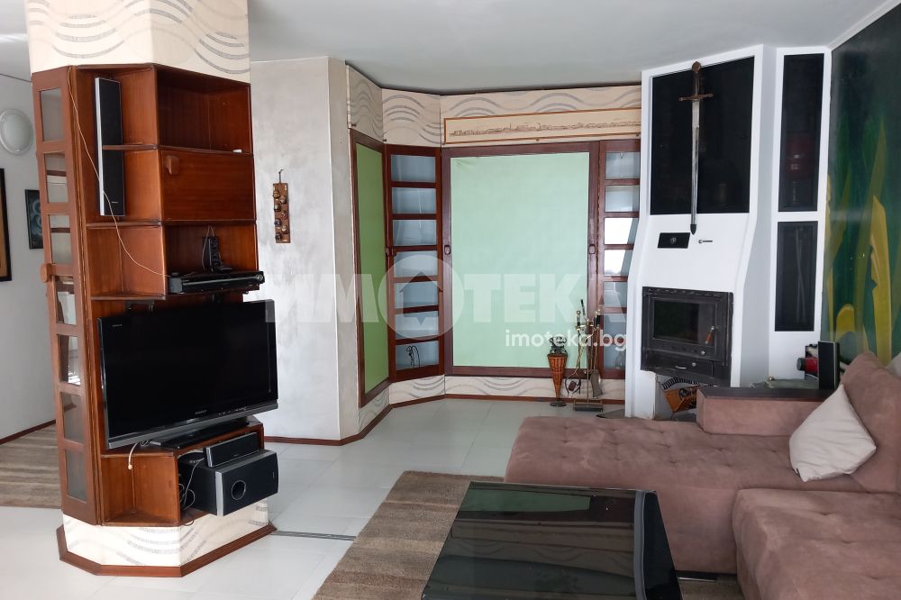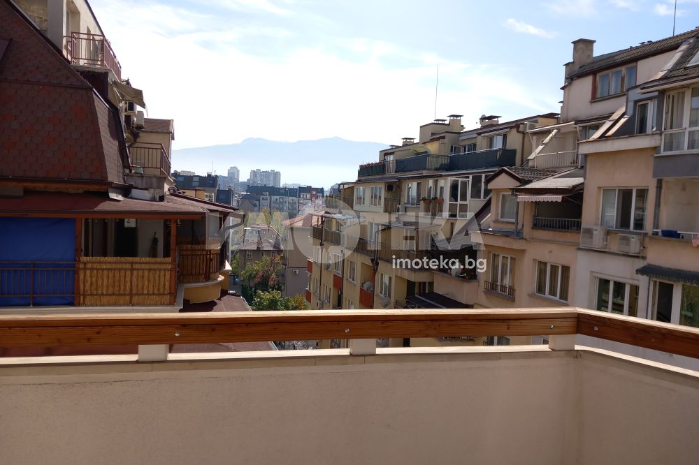 Апартаментът е 135 кв.м.ЗП с ОЧ 150 кв.м. има мазе и гараж. Състои се: от входен коридор, кухненски бокс, трапезария, дневна с тераса и гледка към Витоша, три голями стаи със западно изложение, баня с тоалетна, самостоятелна тоалетна и килер. Предлага се с обзавеждането. Отоплението е на ток с климатици и камина с водна риза. Партерен гараж с ЗП от 27 кв.м.и се продава за 35000 евро.