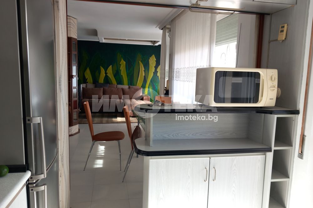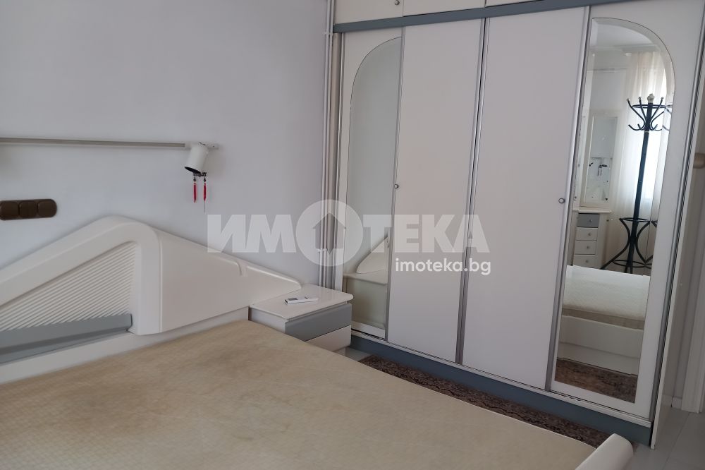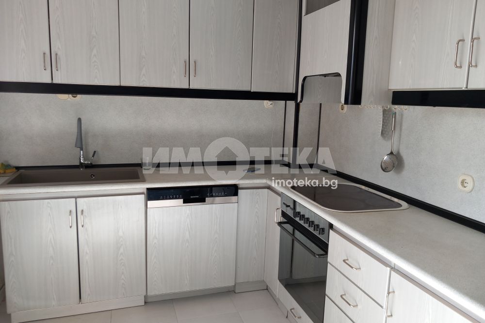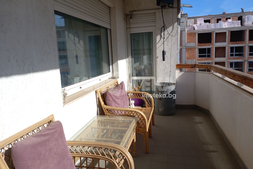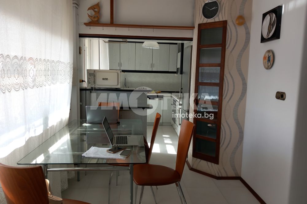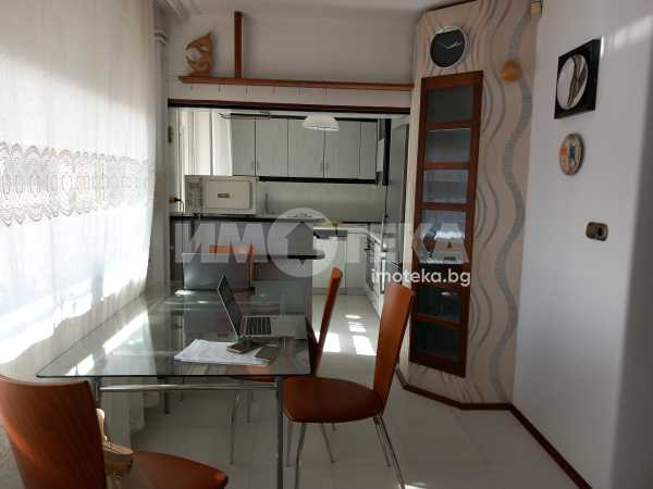Апартаментът е 135 кв.м.ЗП с ОЧ 150 кв.м. има мазе и гараж. Състои се: от входен коридор, кухненски бокс, трапезария, дневна с тераса и гледка към Витоша, три голями стаи със западно изложение, баня с тоалетна, самостоятелна тоалетна и килер. Предлага се с обзавеждането. Отоплението е на ток с климатици и камина с водна риза. Партерен гараж с ЗП от 27 кв.м.и се продава за 35000 евро.
