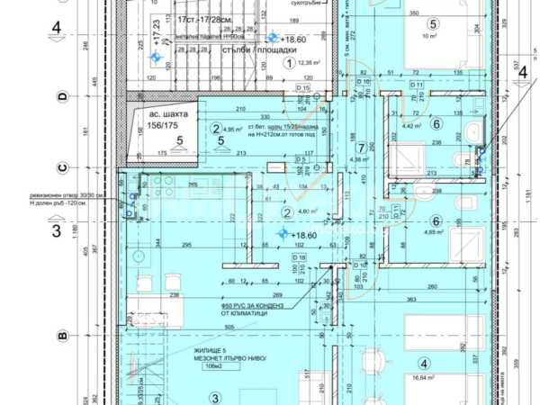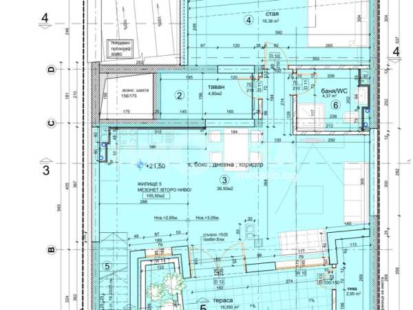 Просторен мезонет на две нива с чиста площ 211,50 кв.м и обща площ 244,44 кв.м, разположен на последните два етажа в сградата. Имотът предлага отлична функционалност, простор и естествена светлина. Първо ниво – кота +18.60 м (106 кв.м) входно антре просторна дневна с трапезария и кухненски бокс коридор спалня с тераса детска стая баня с тоалетна втора баня с тоалетна вътрешно стълбище към второто ниво Второ ниво – кота +21.50 м (105,50 кв.м) дневна зона кухненски бокс спалня баня с тоалетна коридор склад таванско помещение просторна тераса с гледка. Мезонетът е подходящ за луксозен семеен дом, предлагащ простор, панорамни гледки и комфорт на обитаване.