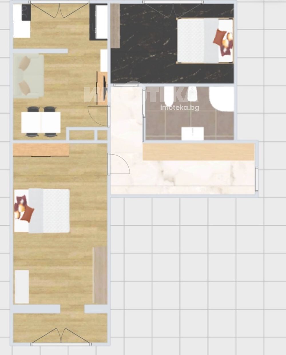 Двустаен апартамент, преустроен в тристаен. Основен ремонт е правен преди 10 години, външна и вътрешна изолация. Дограмата е PVC 3 камерна, настилки : коридор - мрамор, спалня 1 - паркет, кухня и трапезария - гранитогрез и паркет, спалня 2 - гранитогрез. Масивна входна врата със секретни ключалки, всички интериорни врати са сменени.