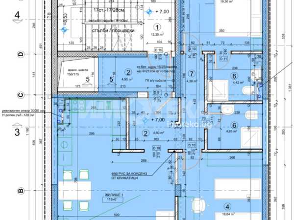 Тристаен апартамент, разположен на кота +7.00 м, с чиста площ 112 кв.м и обща площ 135,29 кв.м. Жилището предлага функционално и удобно разпределение, включващо: