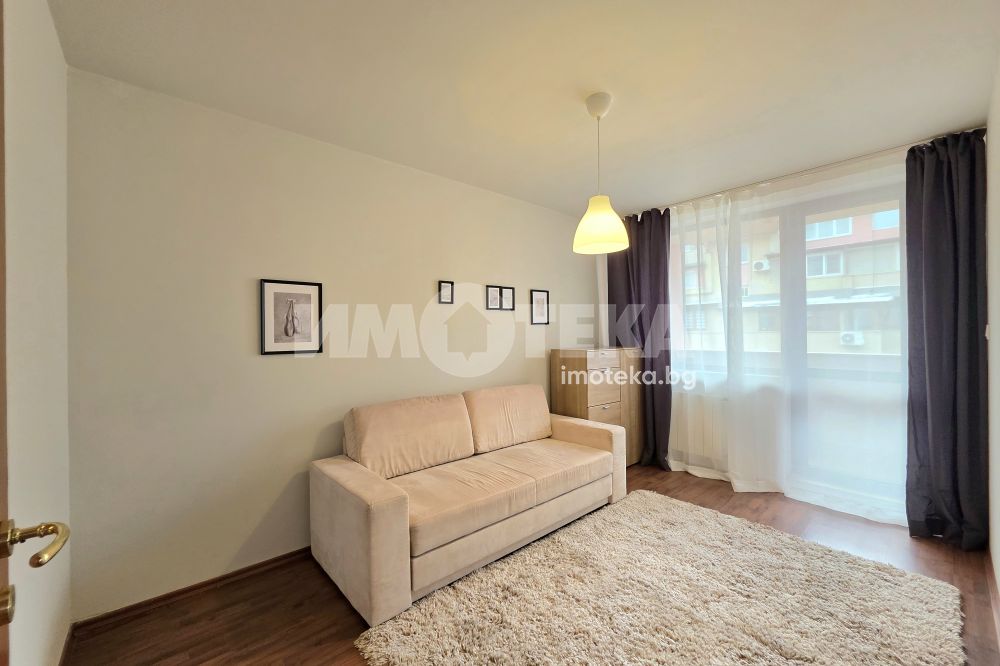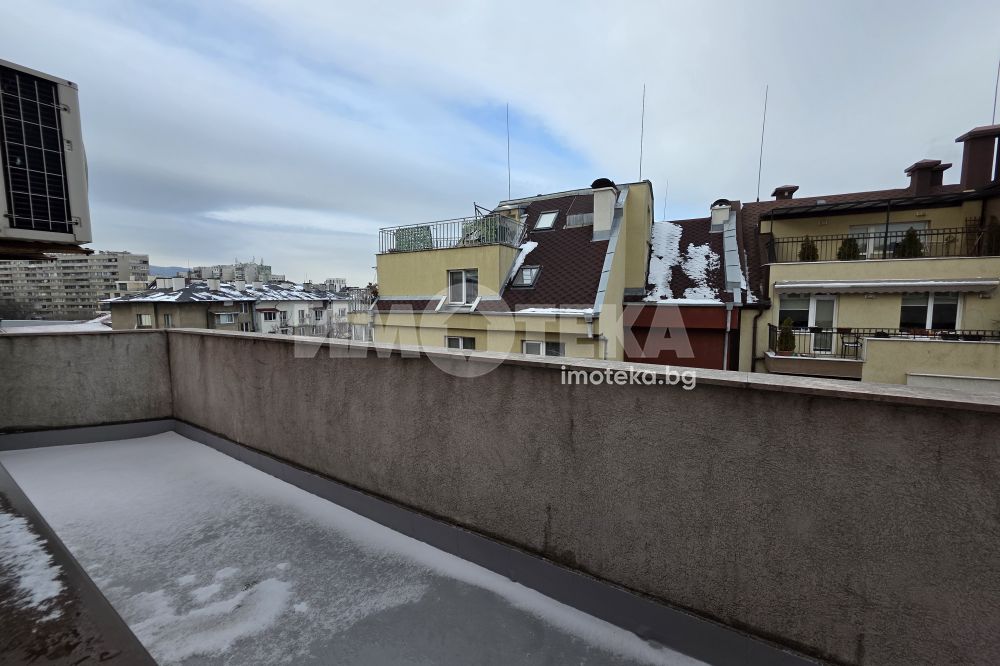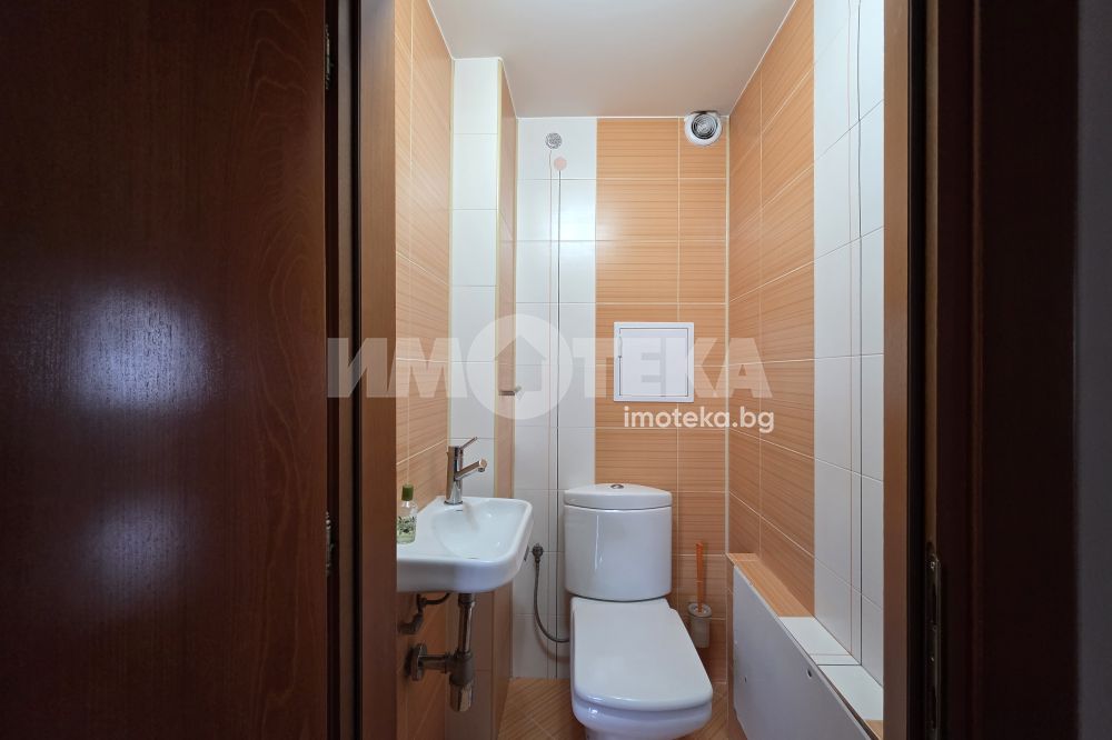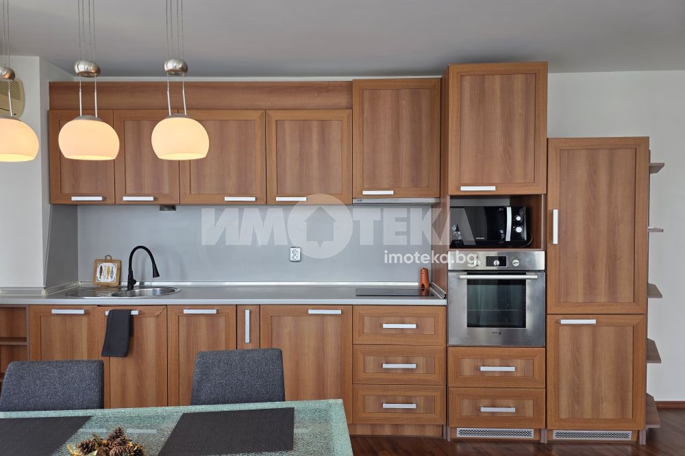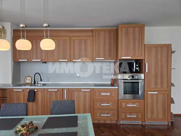 Обзаведен, просторен апартамент на 6 етаж, състоящ се от: дневна с трапезария и кухненски бокс ( напълно оборудван- печка, пералня, хладилник, миална машина, абсорбатор), три спални ,баня ( душ кабина), тоалетна, три панорамни тераси. Подови настилки: ламинат; стени- латекс; PVC-дограма.