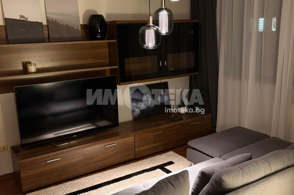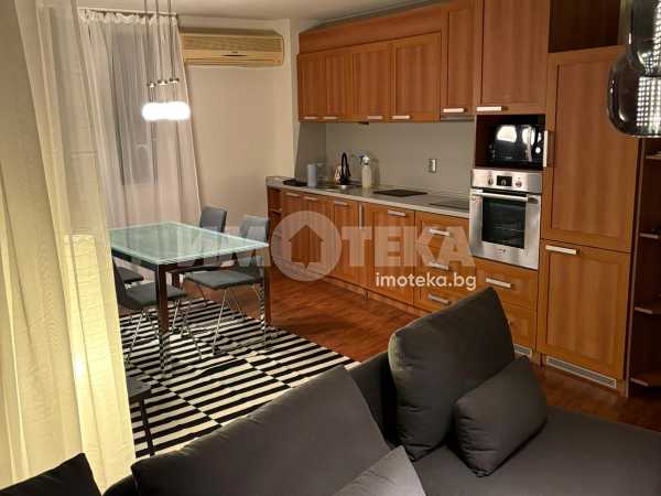 Обзаведен, просторен апартамент на 6 етаж, състоящ се от: дневна с трапезария и кухненски бокс ( напълно оборудван- печка, пералня, хладилник, миална машина, абсорбатор), три спални ,баня  ( душ кабина), тоалетна, три панорамни тераси. Подови настилки: ламинат; стени- латекс; PVC-дограма.