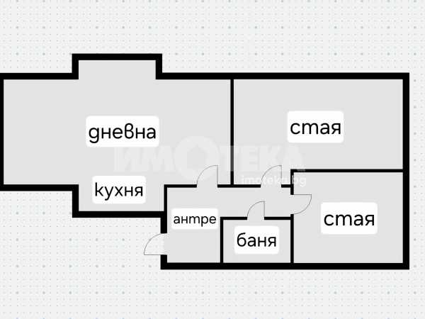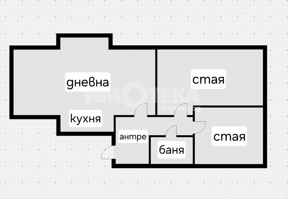 Разполага с :антре, коридор, голяма дневна, две спални, баня/тоалетна, два балкона-лоджии, усвоени към дневна и спалня.