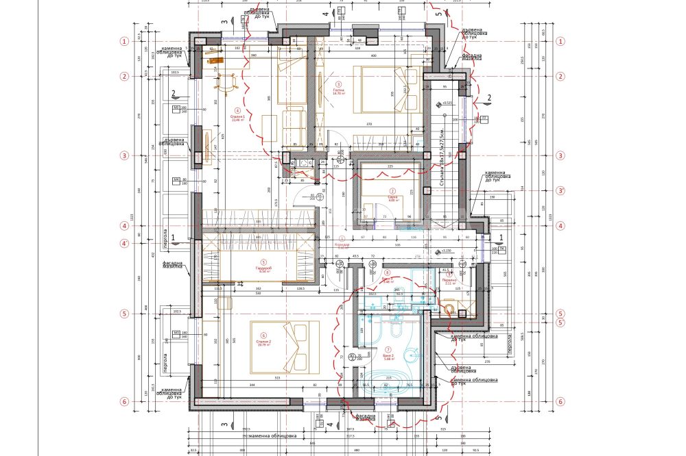 - Завършени с подова настилка рампи към гараж, централен вход, както и пътеки около къщата