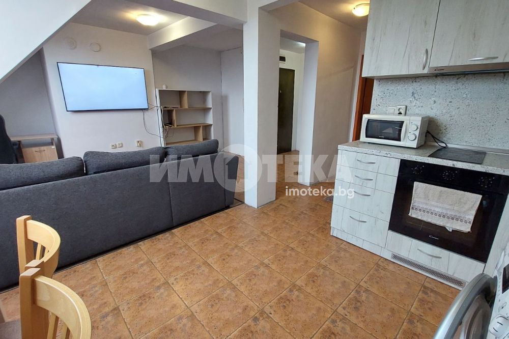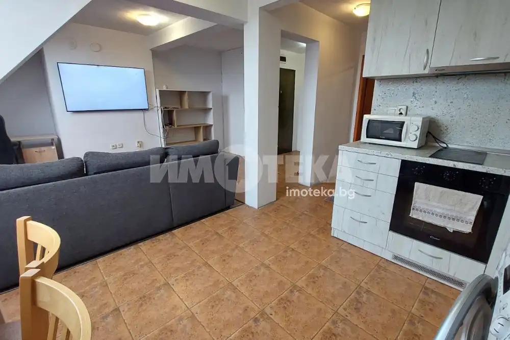 Състои се от дневна с кухненски бокс и трапезария, баня с WC, спалня.