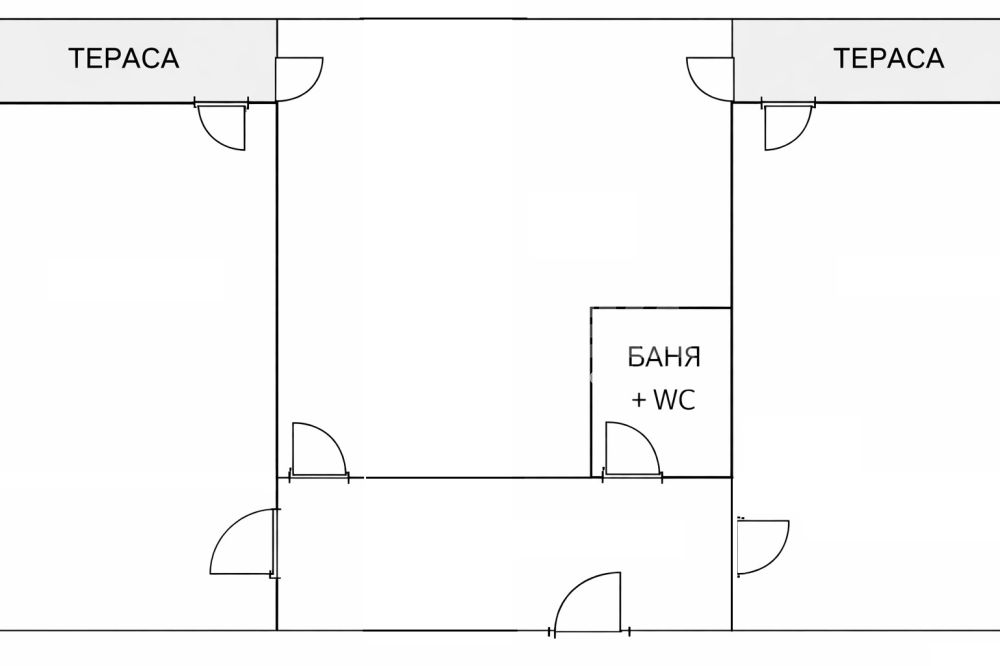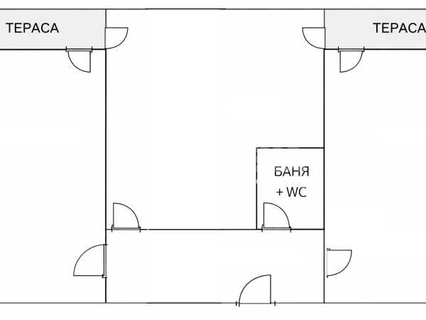 Хол с кухненски бокс; Две просторни самостоятелни спални; Баня; Две тераси; Южно изложение