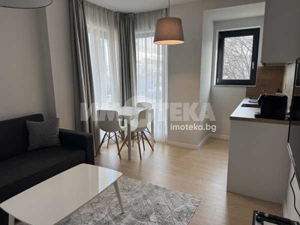 Двустаен апартамент, състоящ се от входно антре, хол с кухненски бокс, спалня, баня с тоалетна и 30кв.м. тераса. Отоплението е на ток. Таксата поддръжка е 47лв. Към апартамента има и прилежащо мазе.