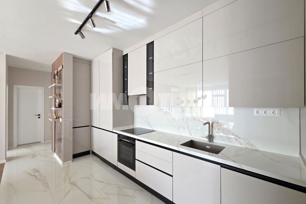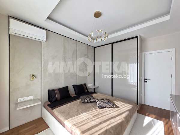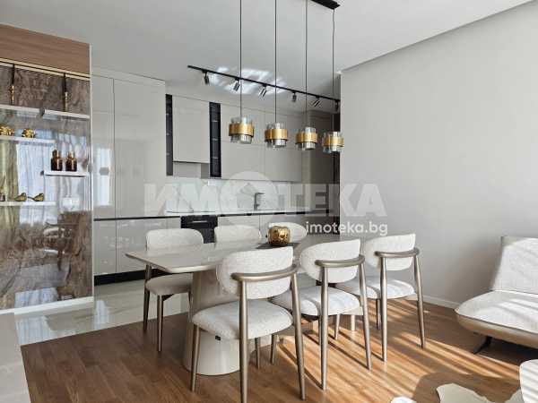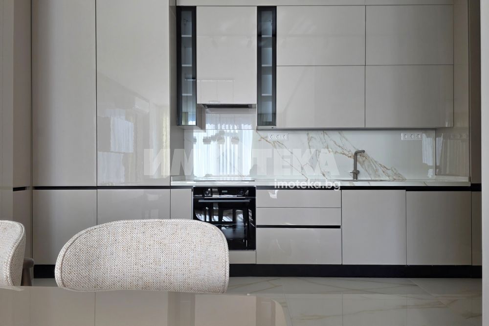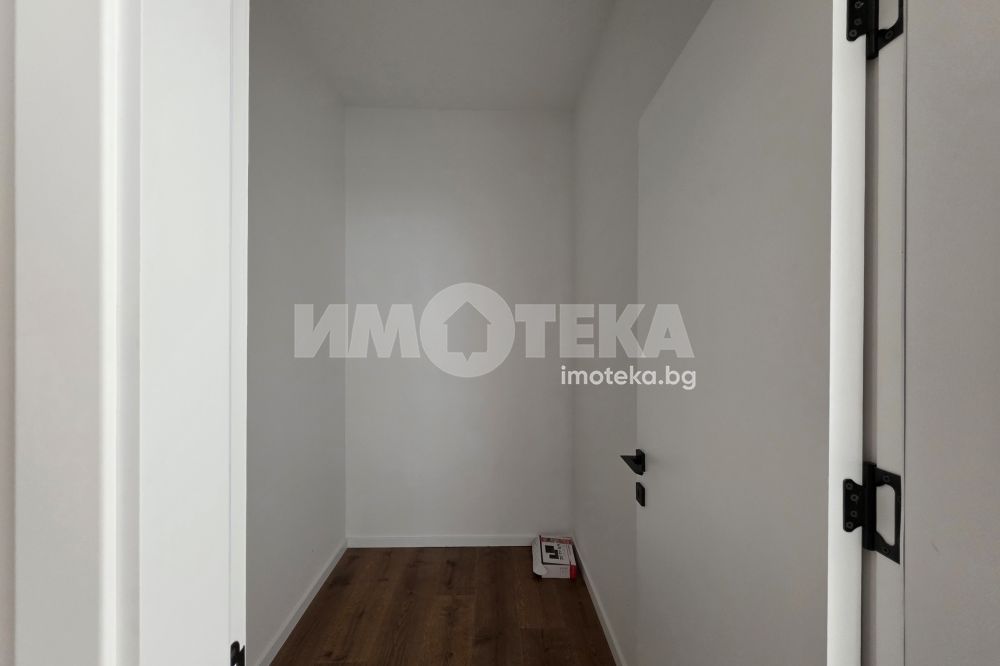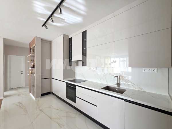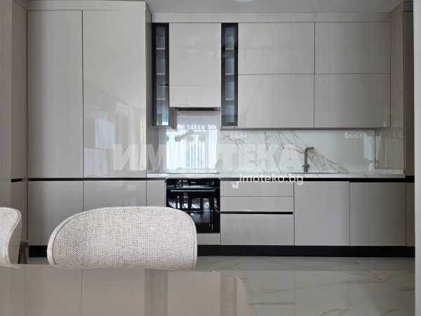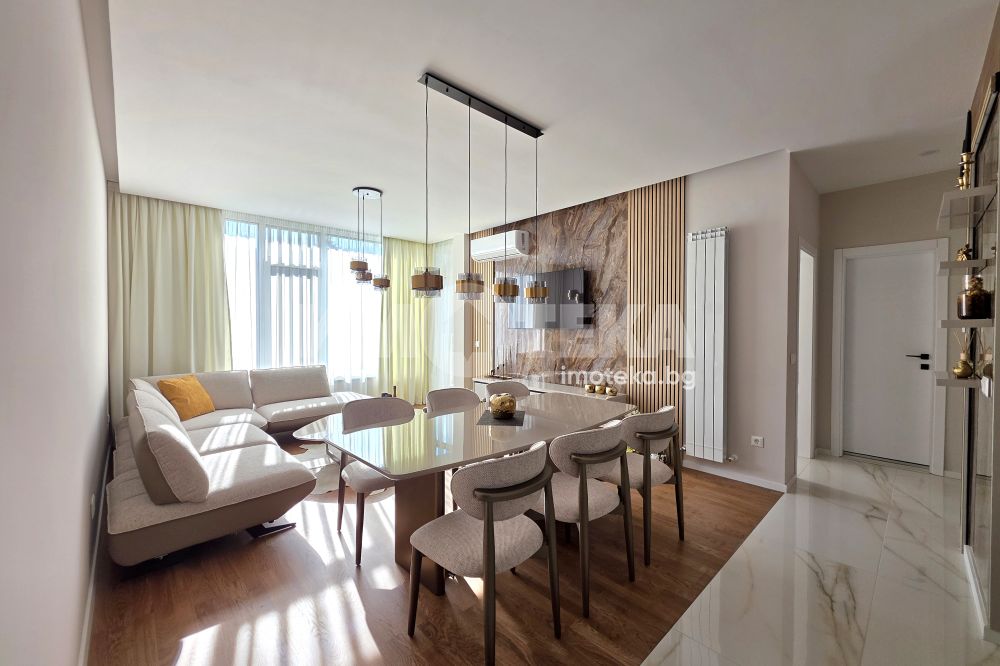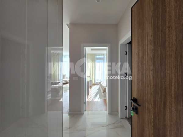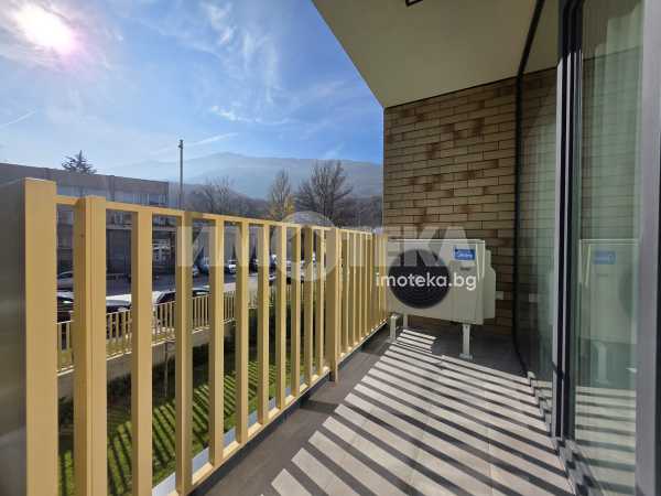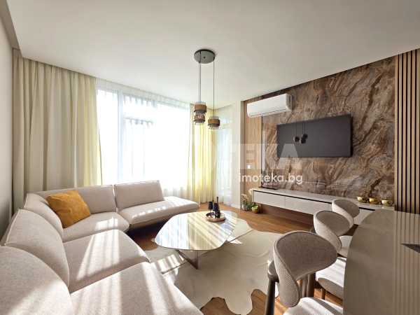 Апартаментът впечатлява с просторни френски прозорци, които разкриват гледка Витоша и създават усещане за свобода и комфорт. Разпределението е функционално и модерно – светла дневна зона с кухненски бокс, уютна спалня, елегантна баня и практични помощни пространства.