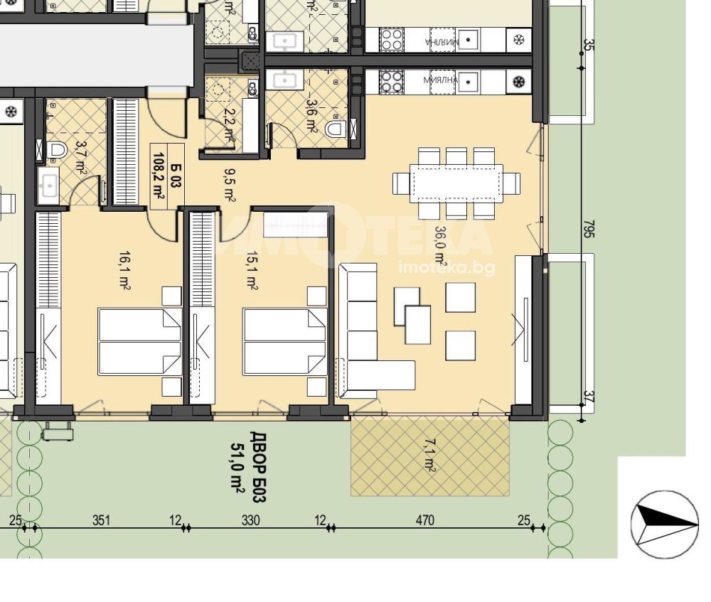 Тристаен апартамент разполагащ с собствен двор 50 кв.м.