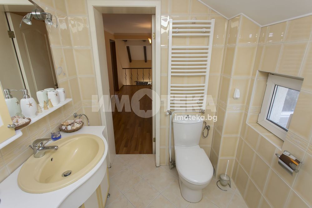 На Вторият етаж:има три спални, от които две с балкони, баня с тоалетна..Апартаментът е напълно обзаведен и разполага с оборудвана кухня.