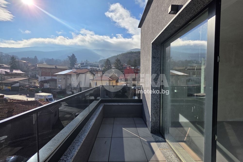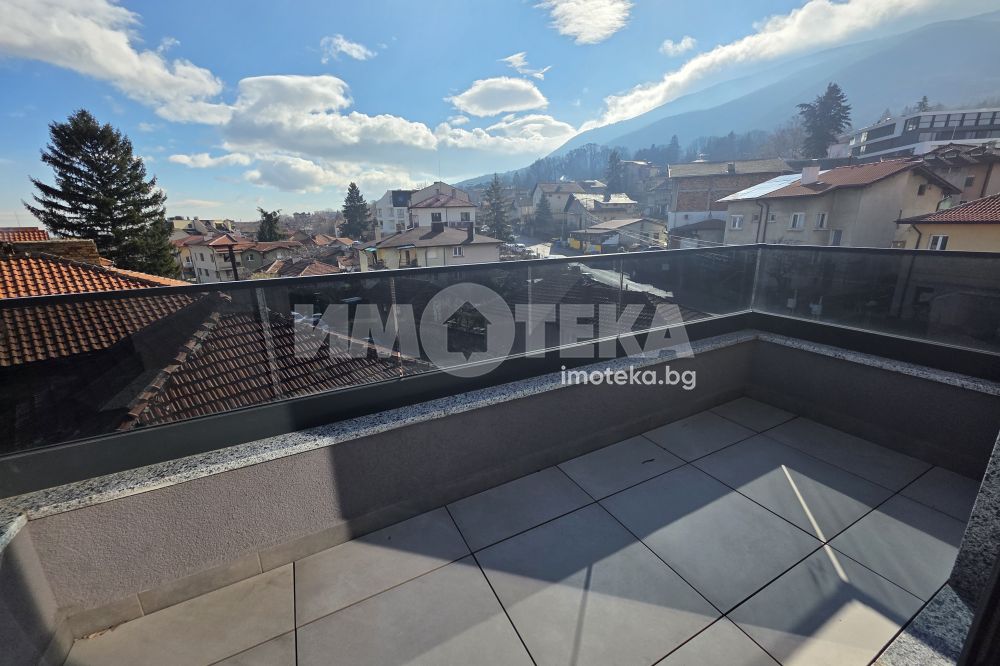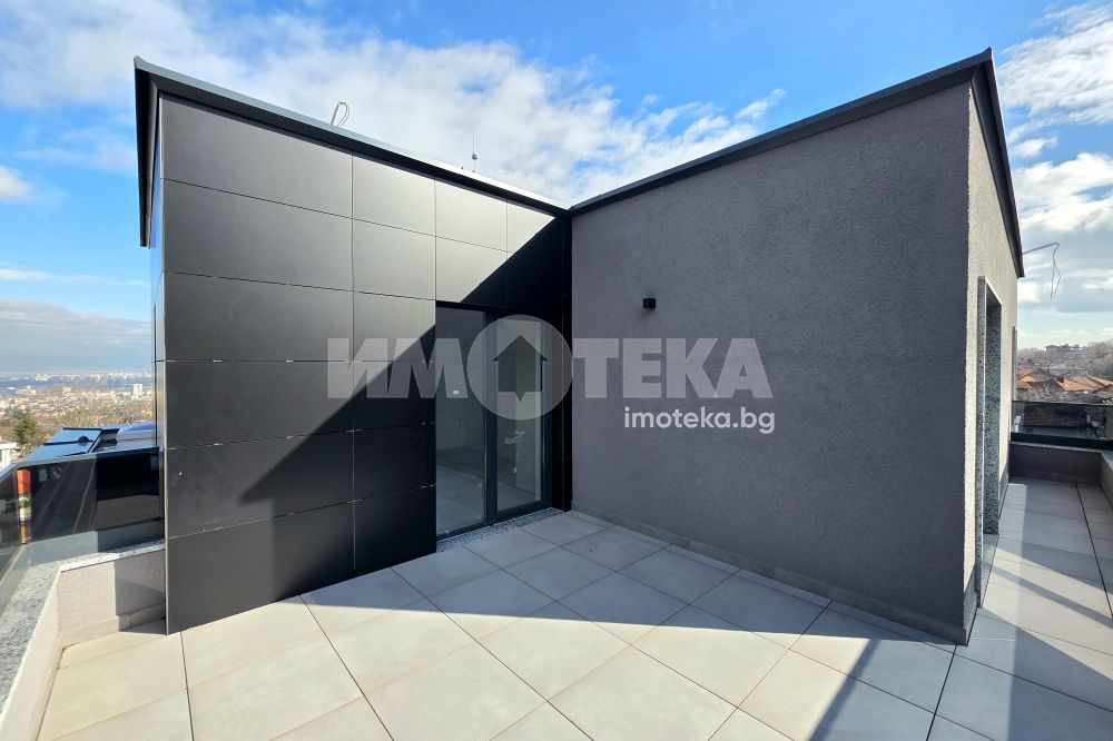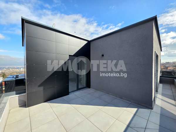 Имотът разполага с просторни тераси, изпълнени с двоен под и стъклени парапети, които осигуряват впечатляващи панорамни гледки към Витоша и града.