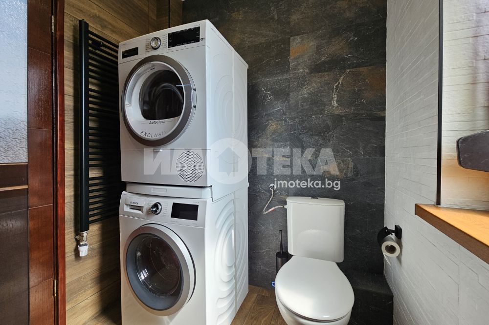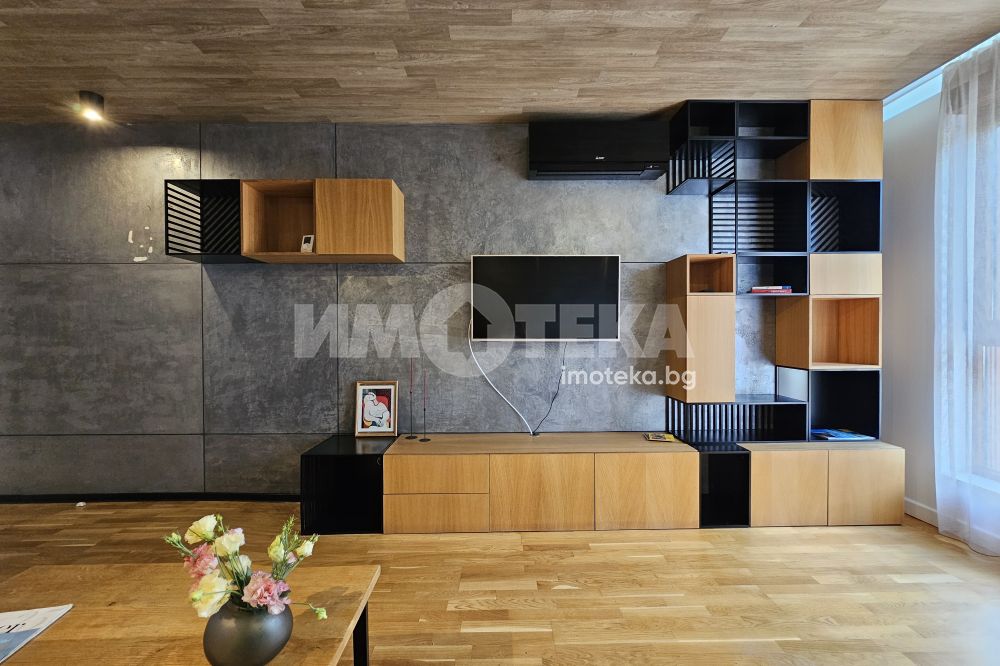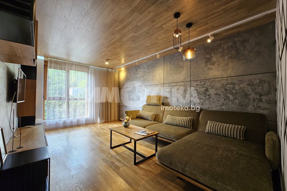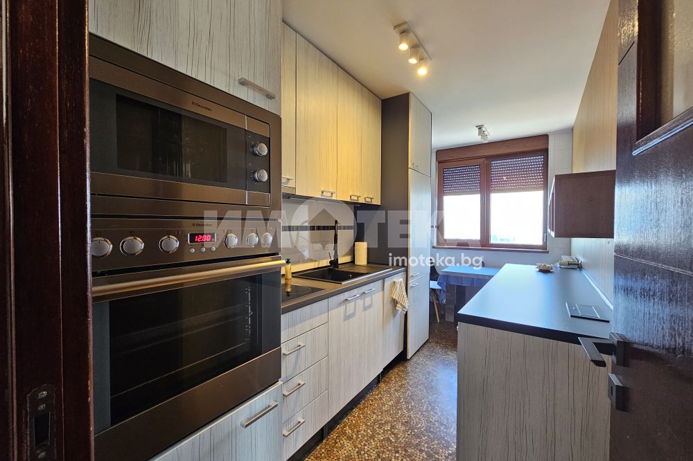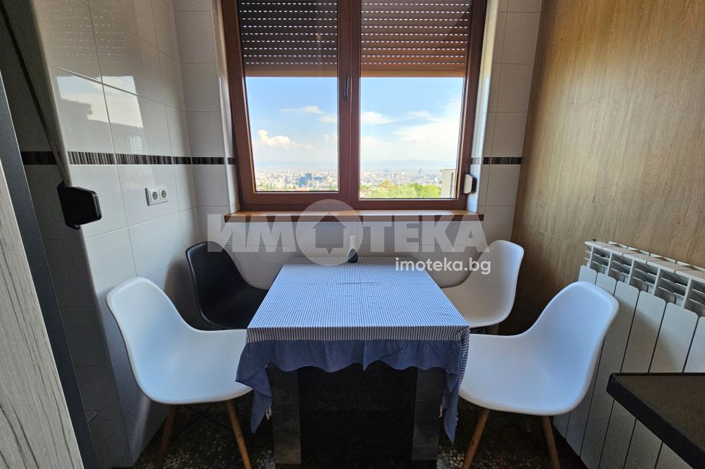 Луксозен затворен комплекс с контролиран достъп, охрана, детска площадка, Завладяващата гледка към планината и града. Външни ролетни щори на всяка стая. Подземенно паркомясто включено в наемната цената и възможмност за допълнително наемане на второ паркомясто за 100 евро на месец. Домашни любимци не се допускат.