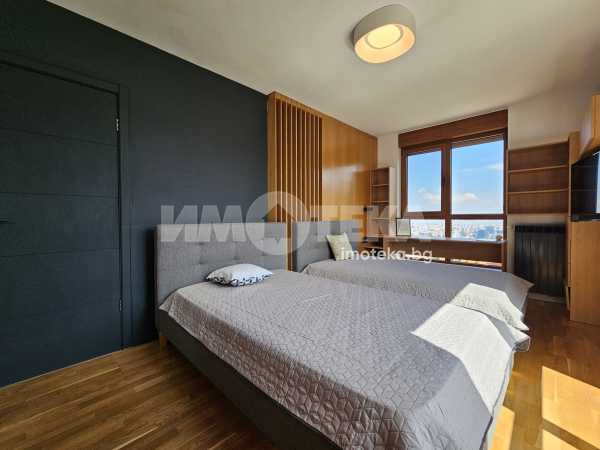 Предлагаме Ви тристаен, луксозно обзаведен апартамент в затворен комплекс и паркомясто в наемната цена. Находящ се в кв. Бояна. Състои се от антре, самостоятелна кухня, всекидневна с трапезария, две спални, две бани с тоалетни, килер, две тераси, с прекрасни гледки към Витоша планиан и града.