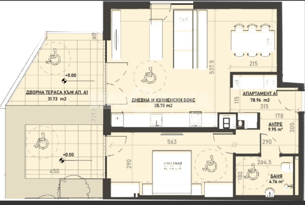 Комплекс от жилищни сгради е разделен на 3 сектора: сграда А, сграда Б и сграда В. Трите сгради разполагат с общ сутерен, разположен на 2 нива посредством закрита рампа, като всяка от сградите има отделен директен достъп до апартаментите чрез стълбище и асансьор. В сутеренното ниво се помещават гаражи, автомобилни паркоместа, велосипедни паркоместа складови помещения.Пред акт 14, една от малкото сгради с канализация в района. Луксозни общи части с висок клас строителни материали! Цените са без ДДС