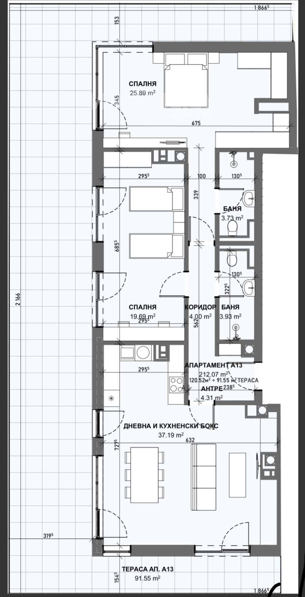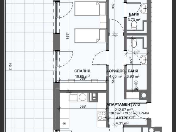 Комплекс от жилищни сгради е разделен на 3 сектора: сграда А, сграда Б и сграда В. Трите сгради разполагат с общ сутерен, разположен на 2 нива посредством закрита рампа, като всяка от сградите има отделен директен достъп до апартаментите чрез стълбище и асансьор. В сутеренното ниво се помещават гаражи, автомобилни паркоместа, велосипедни паркоместа складови помещения.Пред акт 14, една от малкото сгради с канализация в района. Луксозни общи части с висок клас строителни материали! Цените са без ДДС