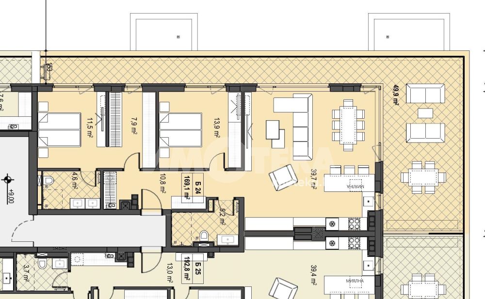 Изключително просторен тристаен апартамент разполагащ с 50 кв.м тераса с гледка към София и Витиша.