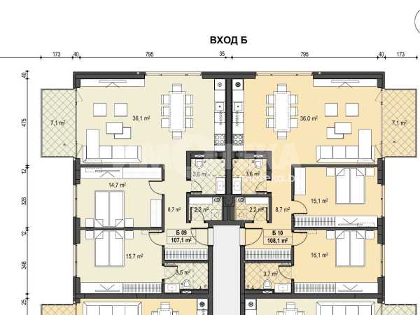 Прекрасен тристаен апартамент с ЗП 108 кв.м и източно изложение. Апартаментът разполага с просторна дневна 36 кв.м, две спални 15-16 кв.м, едната с собствена баня, втора баня с тоалетна, мокро помещение, антре и функционална тераса.
