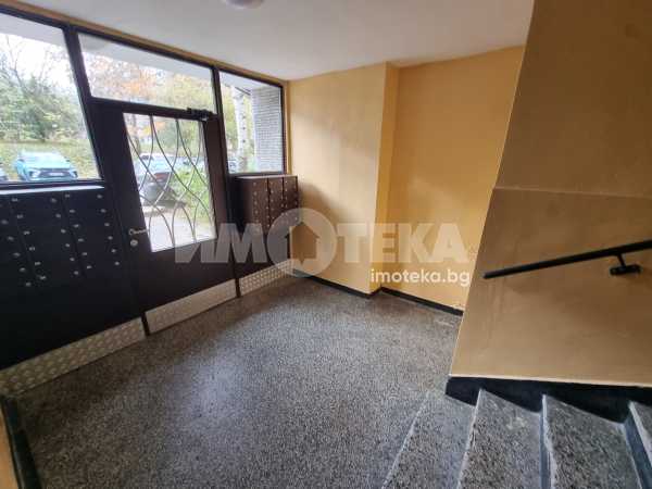 Панелна сграда с много добре поддържани, общи части и подменена входна врата.
