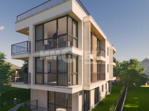 Двустаен апартамент на трети етаж. Имотът е завършен с изключителен бутиков клас изпълнение и високи стандарти на довършителни работи. Състои от голям хол с трапезария и кухненски бокс, спалня, баня и тоалетна, отделна тоалетна и 2 балкона. Възможност за закупуване на двоен подземен гараж на цена 65 000 евро и покрито паркомясто на партер 35000 евро.