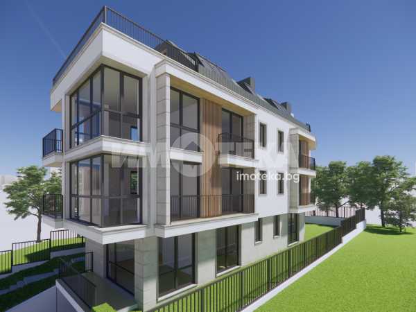 Двустаен апартамент на трети етаж. Имотът е завършен с изключителен бутиков клас изпълнение и високи стандарти на довършителни работи. Състои от голям хол с трапезария и кухненски бокс, спалня, баня и тоалетна, отделна тоалетна и 2 балкона. Възможност за закупуване на двоен подземен гараж на цена 65 000 евро и покрито паркомясто на партер 35000 евро.