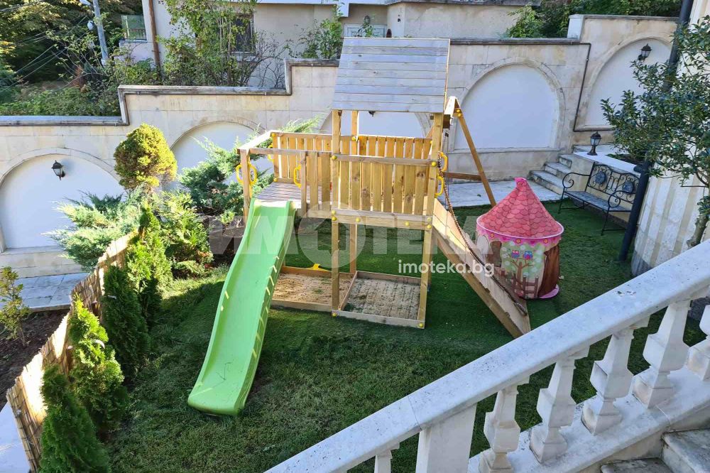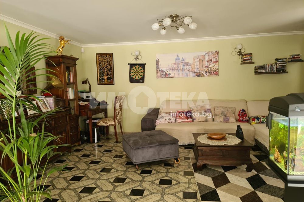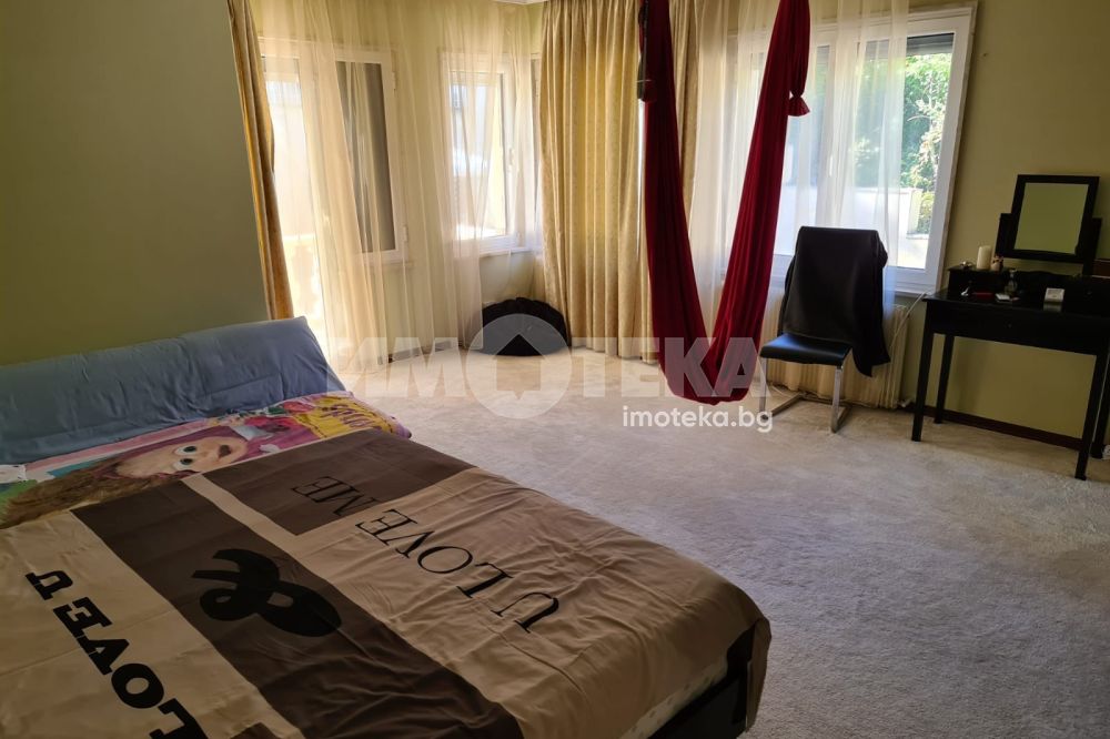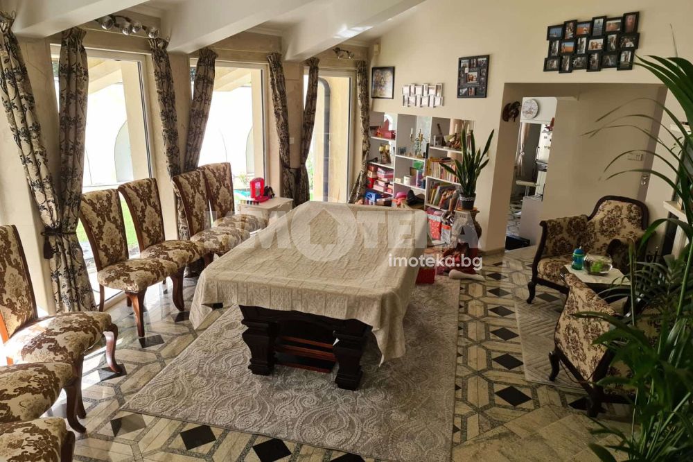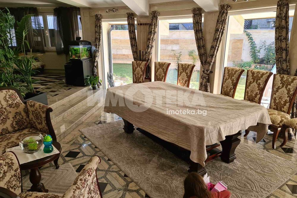 Просторна къща с четири спални , просторен хол с кухненски бокс , множество сервизни помещение , фитнес, двоен гараж.