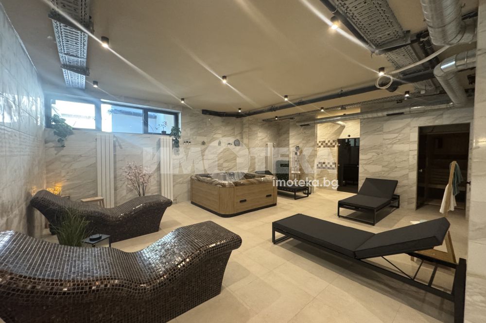 Сред допълнителните удобства са самостоятелен фитнес с уреди Technogym, спа център с джакузи, парна баня, сауна и топли лежанки.