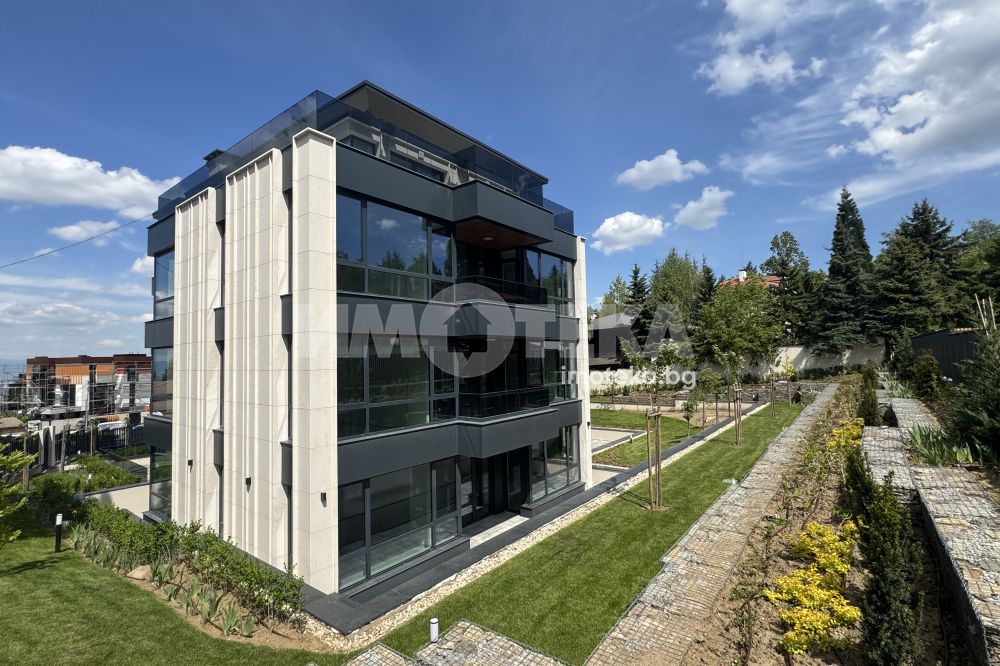 Четиристаен апартамент на втори етаж. Имотът е завършен с изключителен бутиков клас изпълнение и високи стандарти на довършителни работи. Състои от голям хол с трапезария и кухненски бокс, родителска спалня с прилежаща баня и тоалетна, още две спални, баня с тоалетна, отделно тоалетна, мокро помещение, склад и обширни тераси.