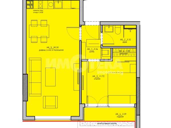 Просторен двустаен апартамент с РЗП: 75,74 кв.м. и ЗП: 64,5 кв.м.. Югоизточно изложение.