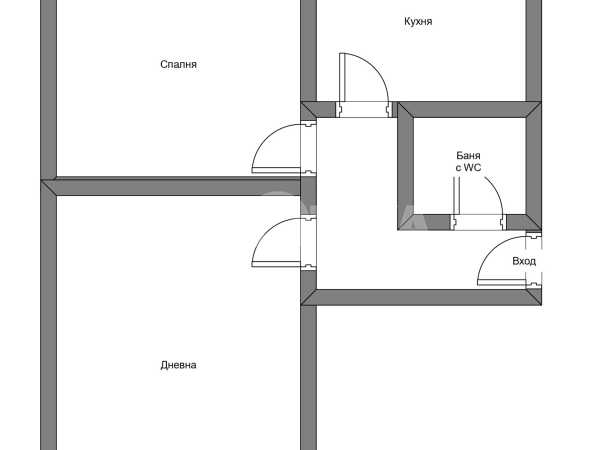 Двустаен апартамент с разпределение-коридор, хол на юг, спалня, кухня с тераса на север, тоалетна+баня в едно.