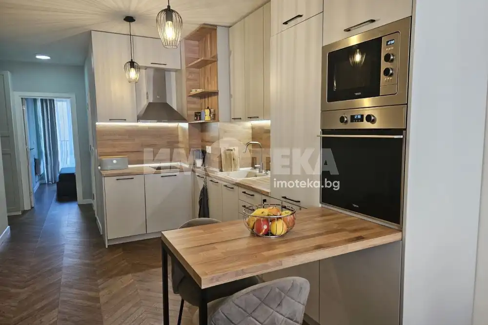Жилището е напълно обзаведено и оборудвано с вградени електроуреди, готово за нанасяне.