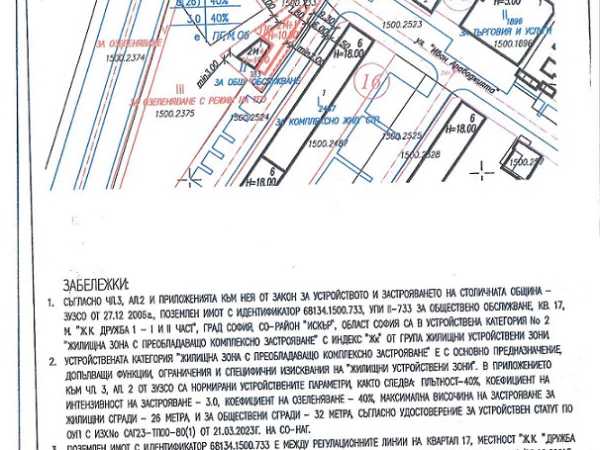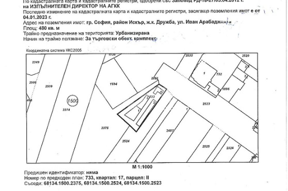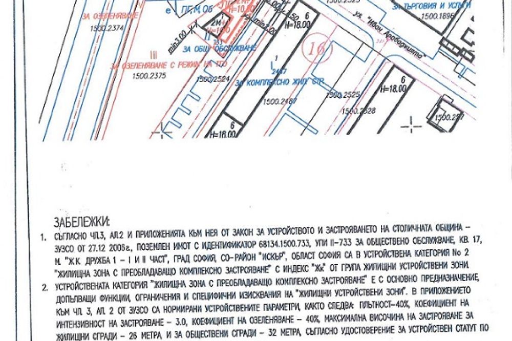 Самостоятелно УПИ с виза, 480 кв.м., заедно с търговски обект на атрактивна локация в Дружба 1. Статута на обекта е заведение и в момента е с наематели. Застроена площ - 194 кв.м. На сутеренния етаж - преддверие, склад - инвентар, тоалетни. На първи етаж - търговска зала, помещение за подготовка и бар-бюфет. На втори етаж- търговска зала, бар-бюфет и три тераси. В парцела са разположени и леки постройки, тип бараки - магазини с различни търговски дейности също с наематели.