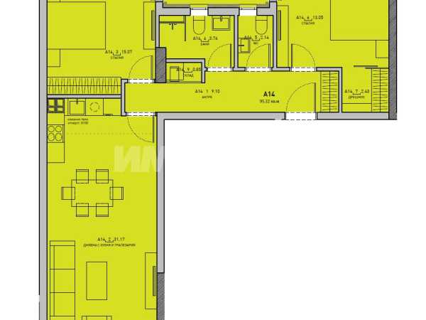 Просторен тристаен апартамент с РЗП: 113,23 кв.м. и ЗП: 97,17 кв.м.. Югоизточно изложение.