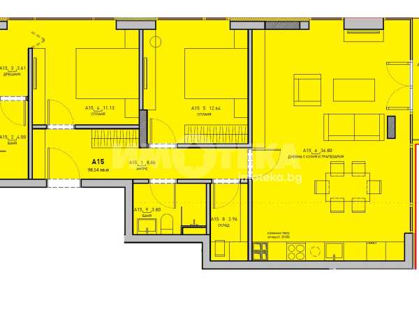Просторен тристаен апартамент с РЗП: 118,54 кв.м. и ЗП: 102,02 кв.м.. Югоизточно изложение.