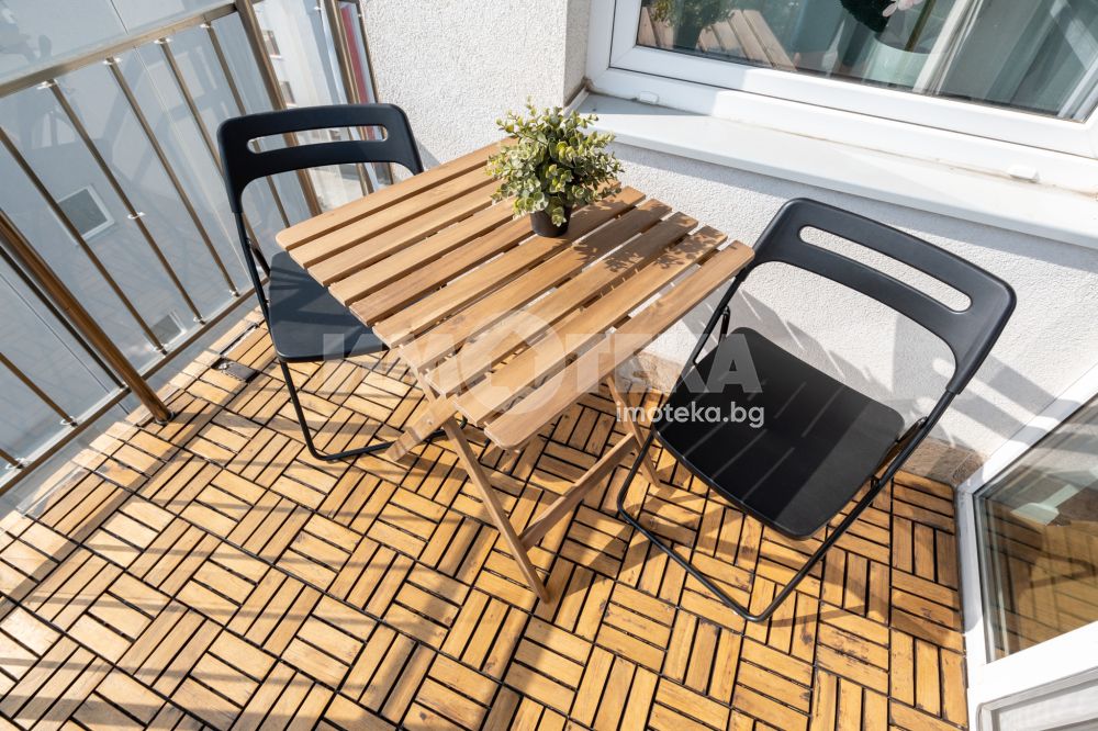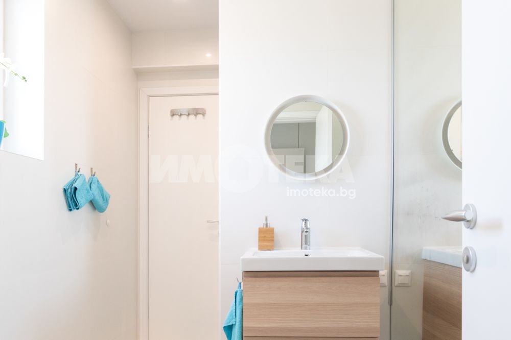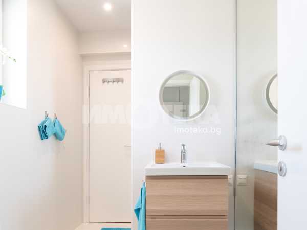 Ел. подово отопление в банята (Devi), 80 л. бойлер за вода. Апартаментът се продава с цялото ел. оборудване и мебели - Bosch, AEG, Ikea.