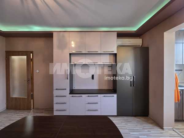 Отличен готов за живеене обзаведен апартамент, разпределение - хол с кухненски бокс, спалня, втора скрита спалня в холната секция, санитарен възел, антре. Изключително добро оползотворяване на пространството с функционални мебели по поръчка и голям обем място за съхранение. Има и мазе. На среден етаж с хубава гледка, спокоен район с места за паркиране и съществеременно близко до метрото!