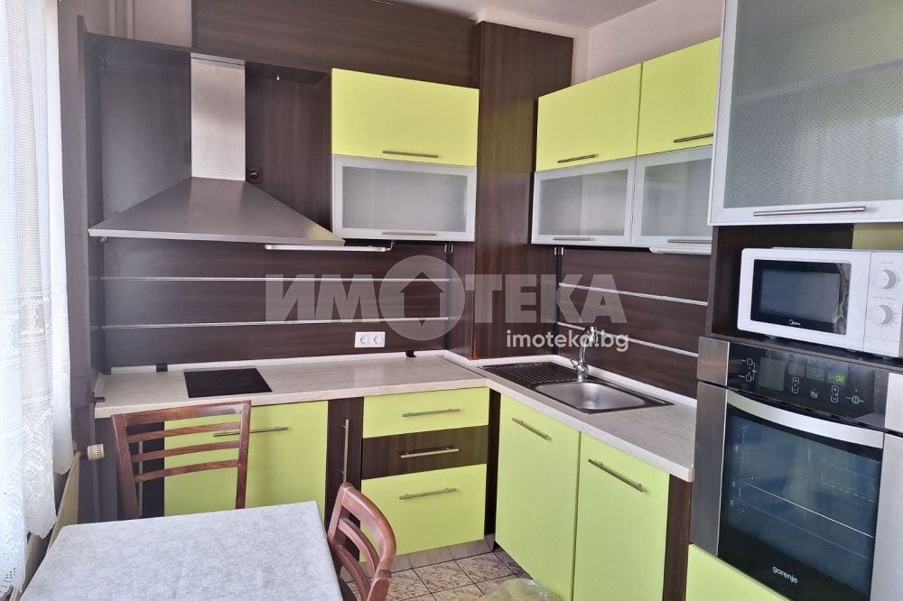 Жилището е светло и функционално. Кухнята е напълно обзаведена – хладилник, фурна, котлони, абсорбатор, съдомиялна машина, маса и столове.