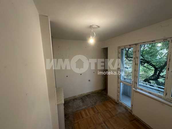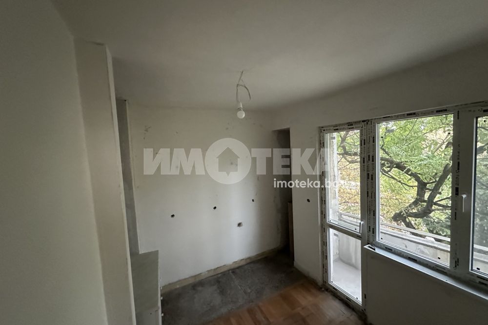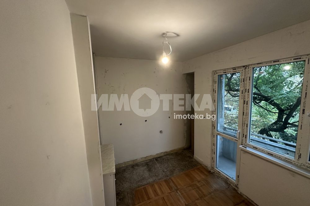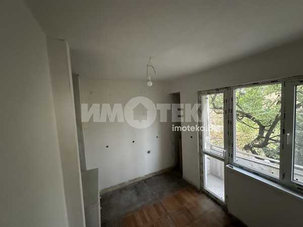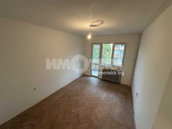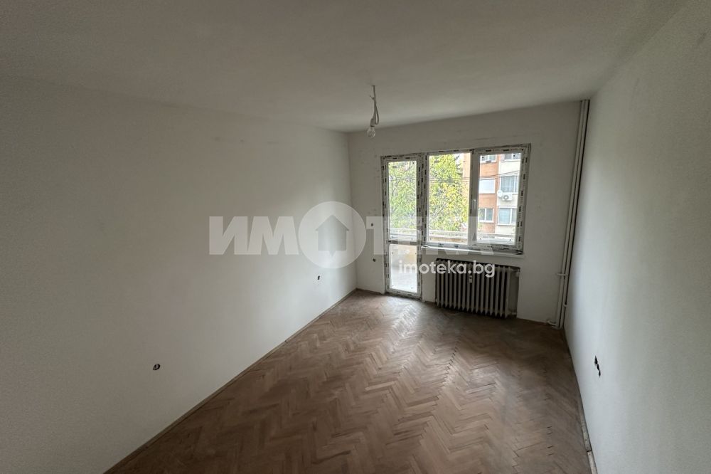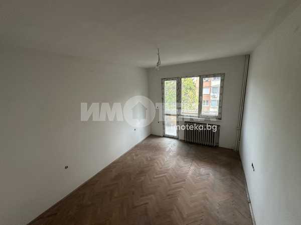 Тристаен апартамент, състоящ се от Г - образен коридор, две големи спални, едната от които с балкон, хол, кухня с балкон, баня, отделно WC и два килера/мокро помещение. Мазе - 15 кв.м. Жилището е с нова дограма с троен стъклопакет, изцяло сменена електрическа инсталация и входна врата, финна шпакловка, готов за боядисване. Банята и тоалетната са подготвени за ремонт, като всички стари плочки и санитарии и врати са премахнати. Изчистен от мебел и вещи.