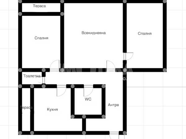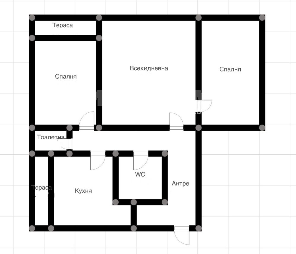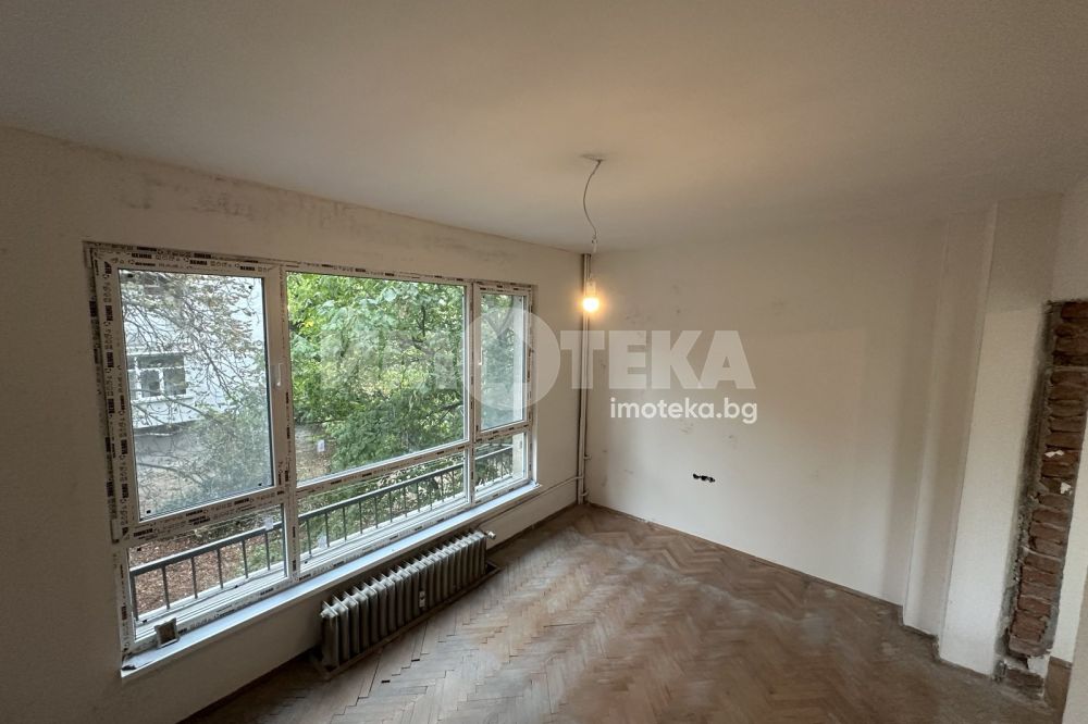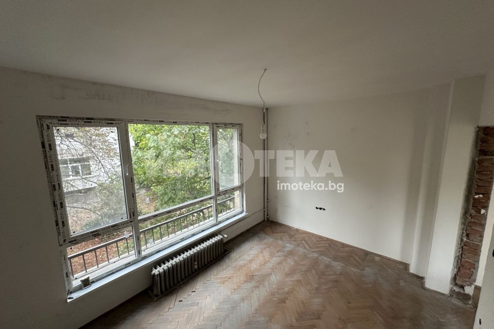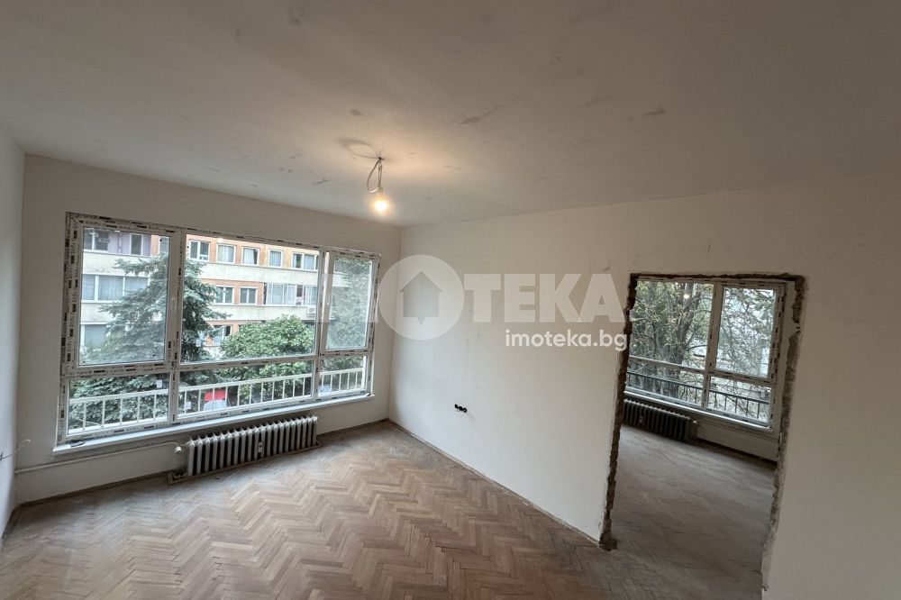 Тристаен апартамент, състоящ се от Г - образен коридор, две големи спални, едната от които с балкон, хол, кухня с балкон, баня, отделно WC и два килера/мокро помещение. Мазе - 15 кв.м. Жилището е с нова дограма с троен стъклопакет, изцяло сменена електрическа инсталация и входна врата, финна шпакловка, готов за боядисване. Банята и тоалетната са подготвени за ремонт, като всички стари плочки и санитарии и врати са премахнати. Изчистен от мебел и вещи.