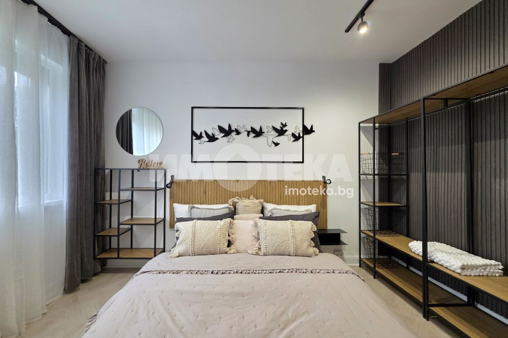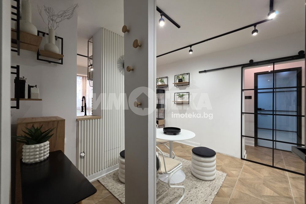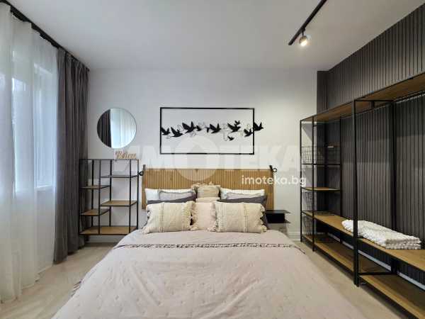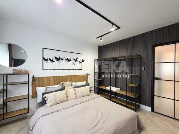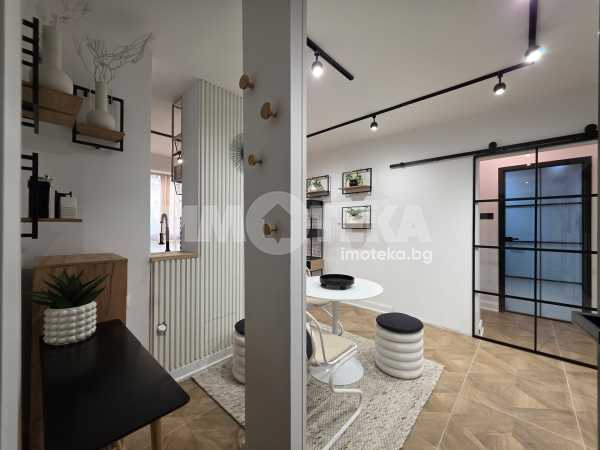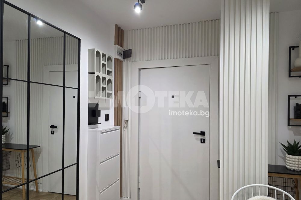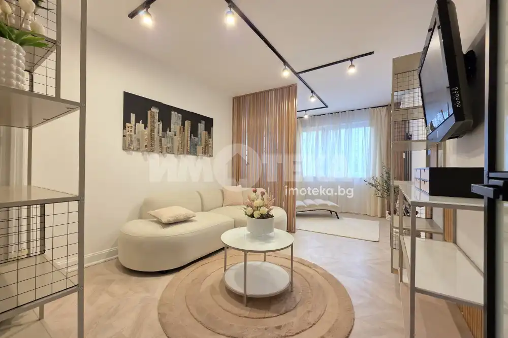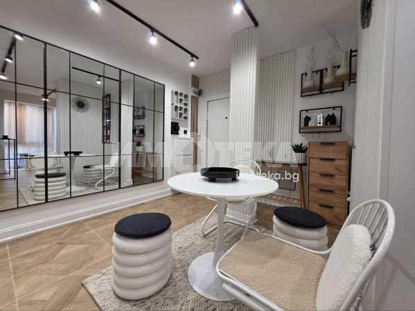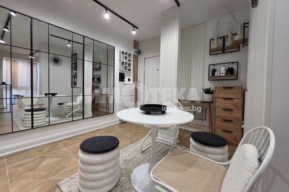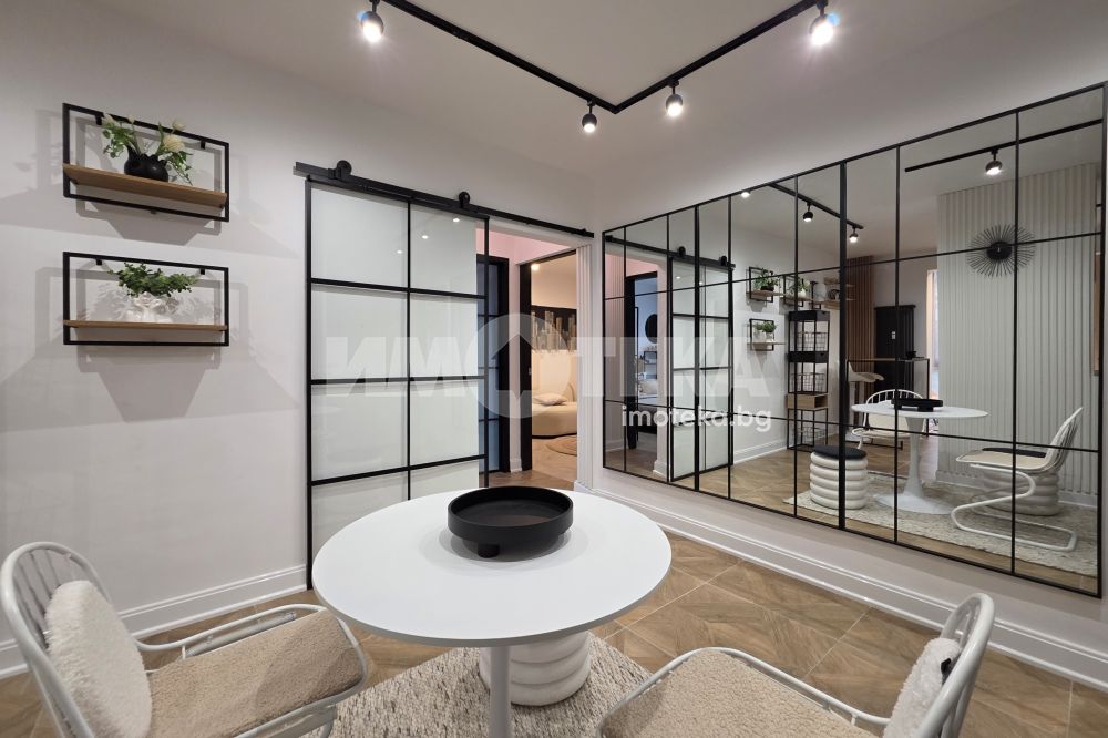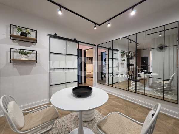 Очарователно модерно жилище, с чиста застроена площ от 66 кв.м., просторни и светли стаи, комфортно разпределение и несравним уют. Функционално са обособени : всекидневна с предверие и трапезария, кухня с висока бар маса и релакс зона, непреходна спалня, голяма стая “тип студио“ с два обособени къта : хол с мека мебел и телевизия, и пространство за кабинет/ втора спалня, коридорче и баня с тоалетна.