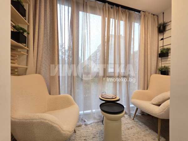 Имотът е ситуиран в поддържана панелна сграда от средата на осемдесетте години, заобиколена от много зеленина, места за свободно паркиране и пространства за отдих. Отлични общи части, асансьор, ТЕЦ, контролиран достъп и симпатични съседи. Намира се на изключително удобна и предпочитана за живеене локация, в близост до множество спирки на градския транспорт, Скай Сити Мол, BSR София, БАН, националното училище за танцово изкуство, три детски градини, две училища, пазар, спортни зали и съоражения, парк.