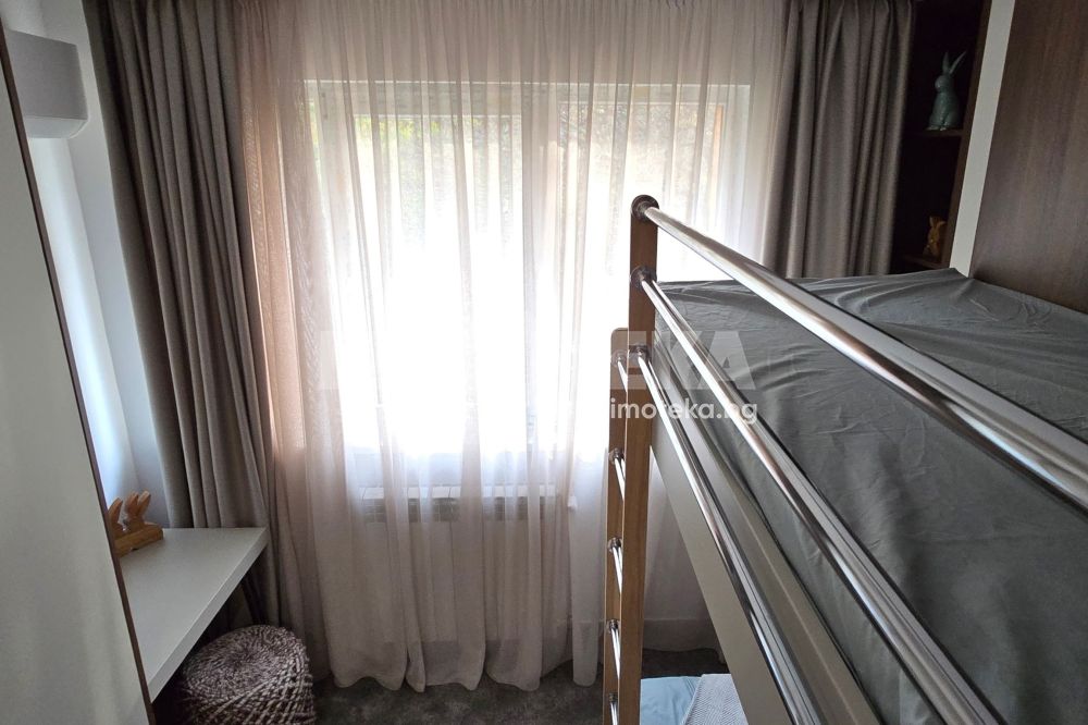 Тристаен апартамент в кв. Гео Милев, напълно обзаведен. Състои се от две спални, дневна с кухненска част, баня с тоалетна и тераса към дневната. Отоплаението е на ТЕЦ и климатици.