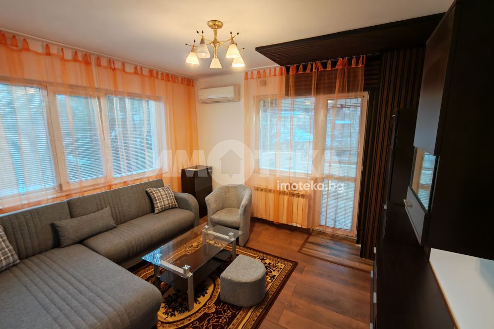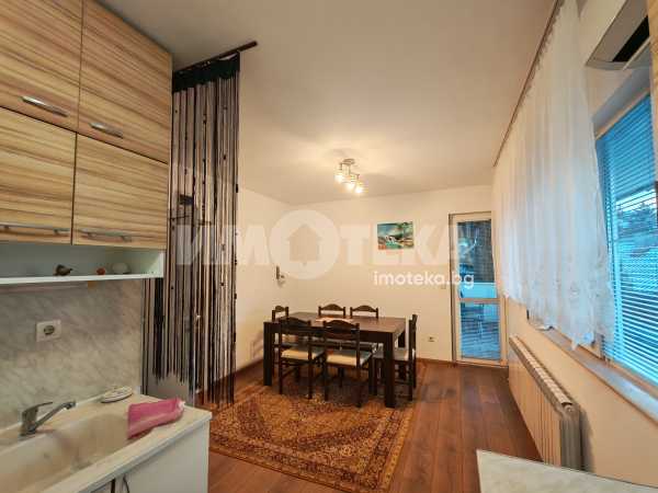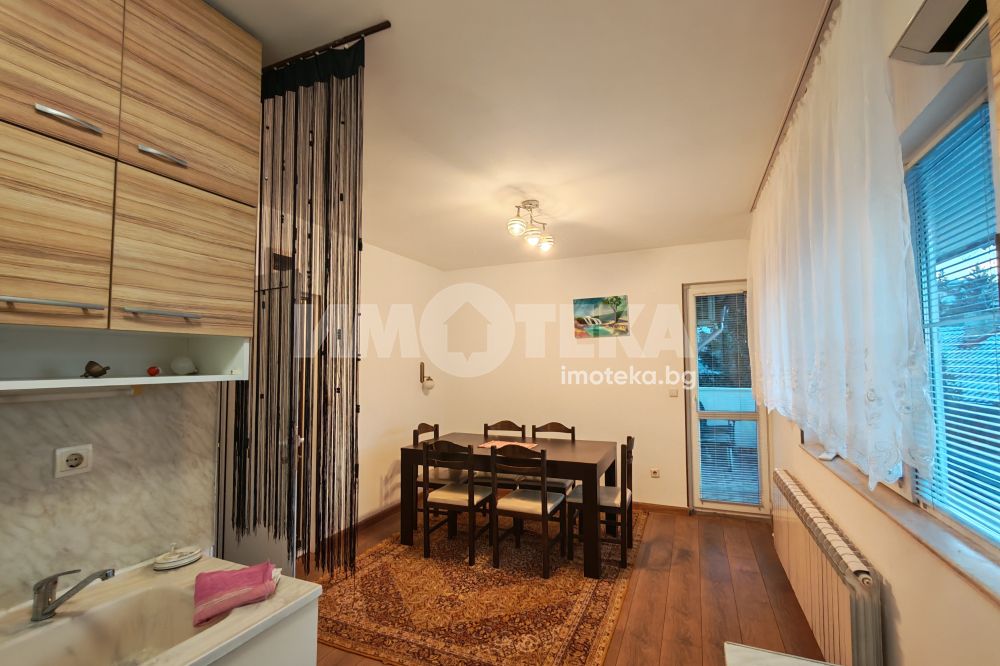 Двустаен обзаведен апартамент в кв. Горна Баня. Жилището е разположено на трети етаж и е със следното разпределение: хол, спалня, отделна кухня, сервизно помещение, баня с тоалетна и обща тераса за хола и кухнята. Отоплението е на климатици.