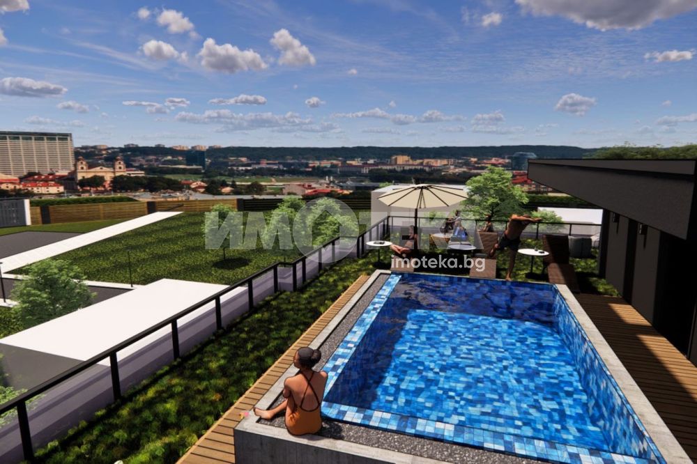 На покрива ще намерите басейн, от който можете да се наслаждавате на прекрасна гледка и свежест. Партерните апартаменти разполагат с градинки, идеални за релаксация или за събирания с приятели и семейство.