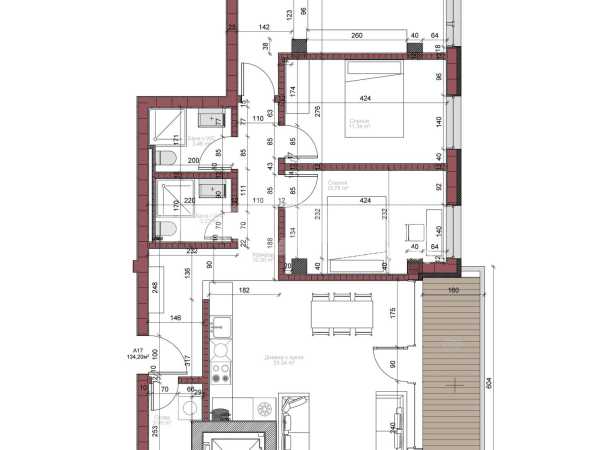4-стаен апартамент с южно изложение и площ 134,20 кв.м.