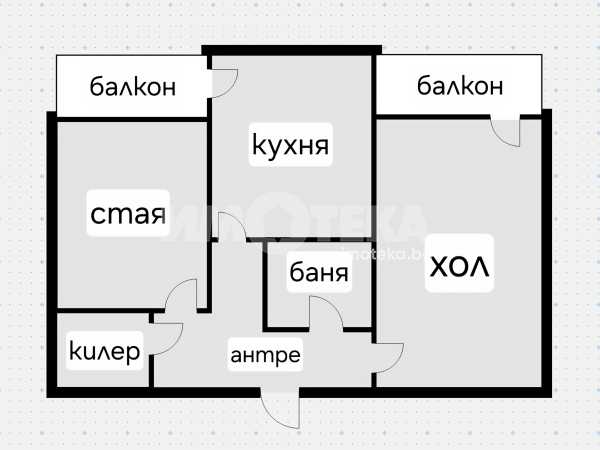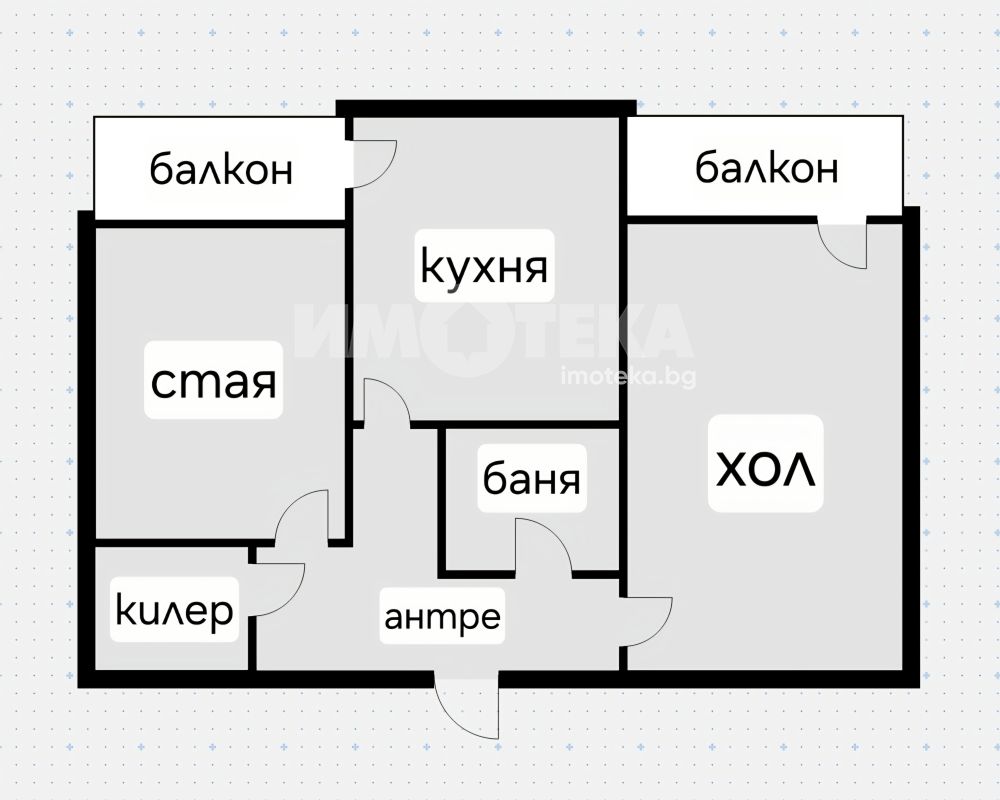 Апартаментът е с 67 кв.м. чиста площ, практично разпределени между: