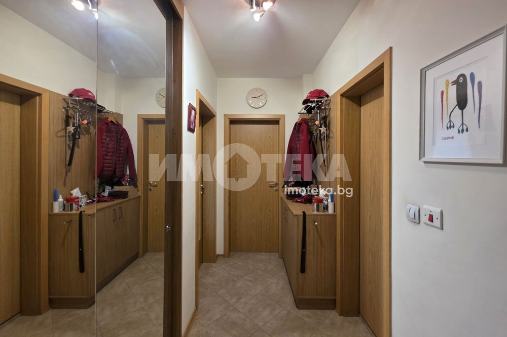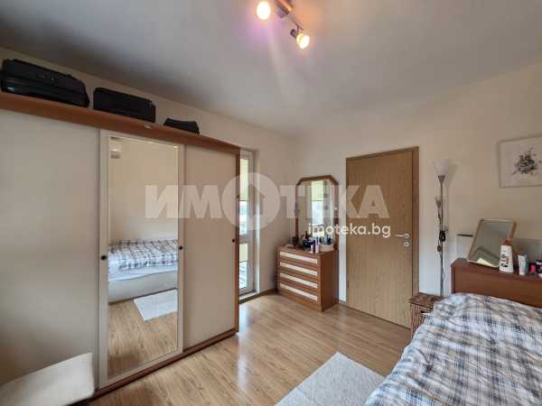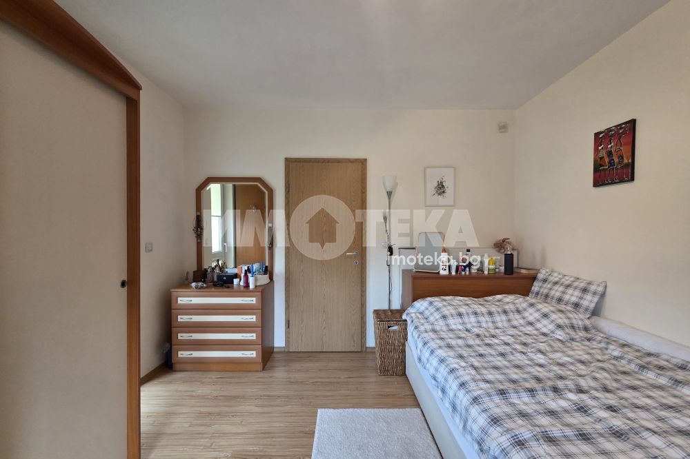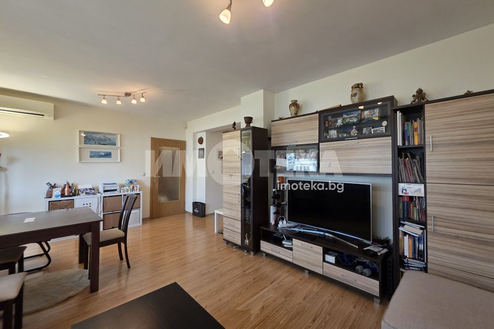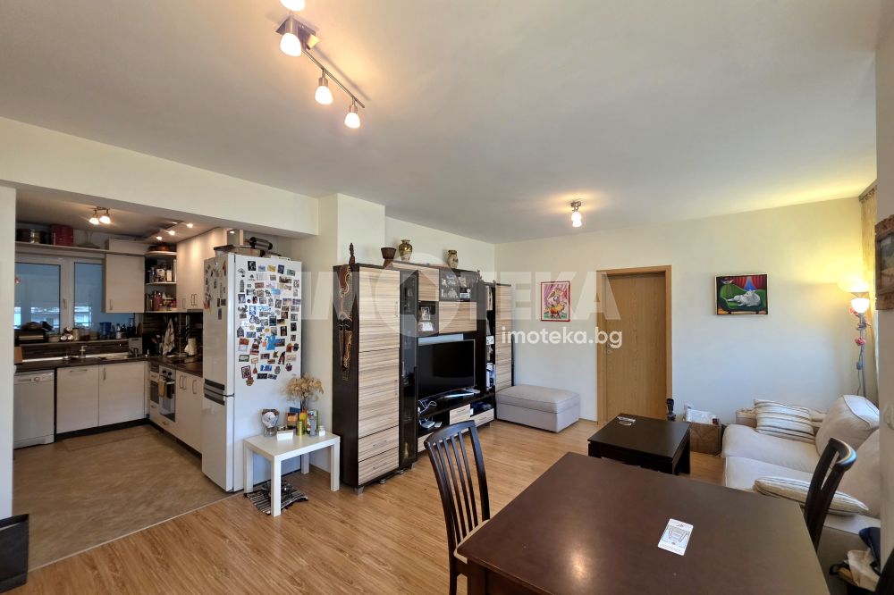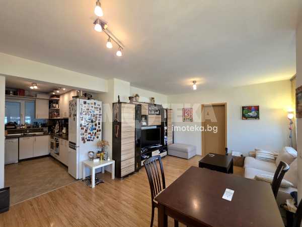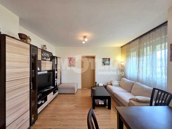Имота е разпределен с антре, два санитарни възела, дневна с кухня и трапезария ведно и две спални.