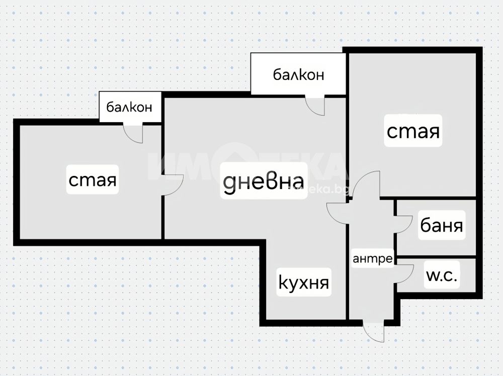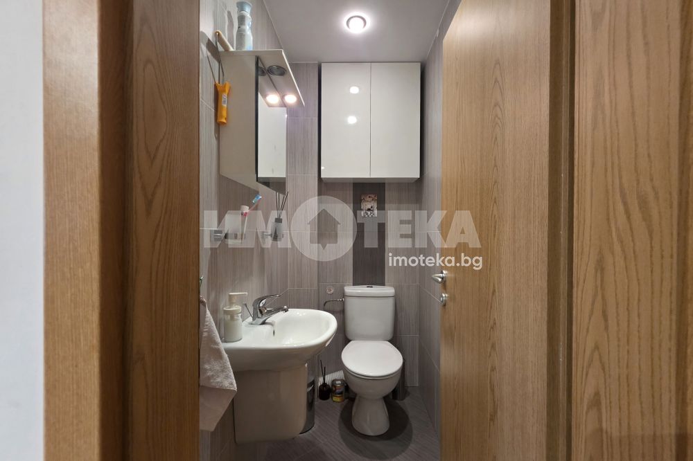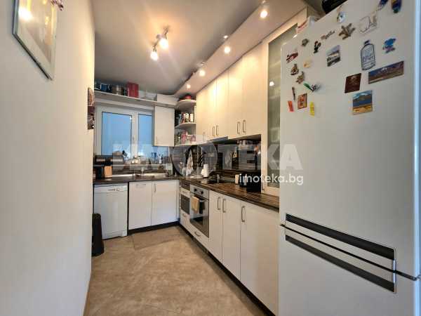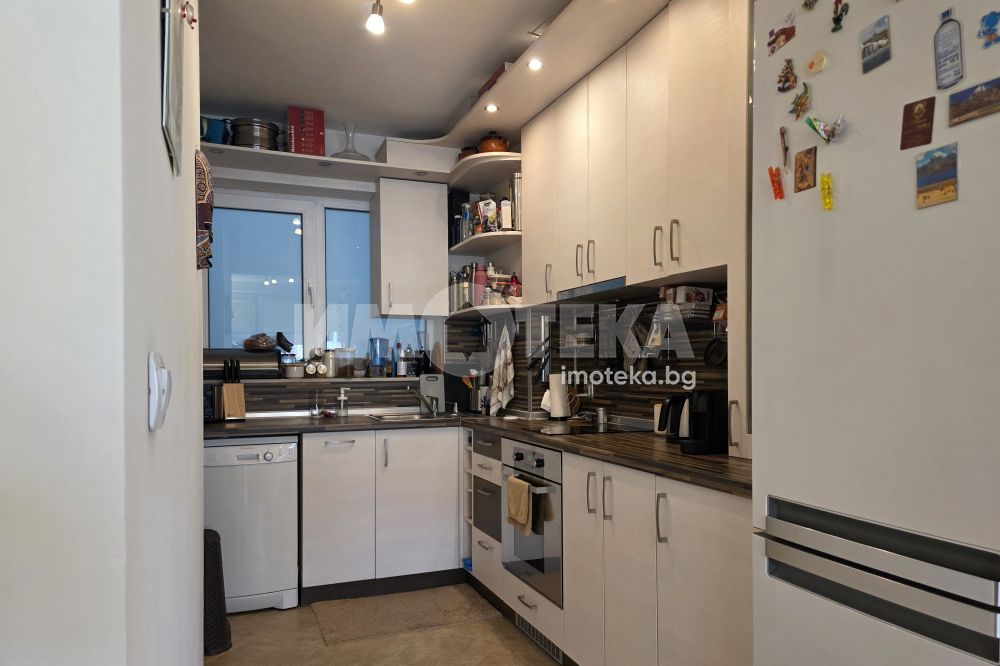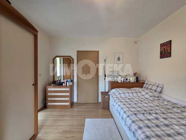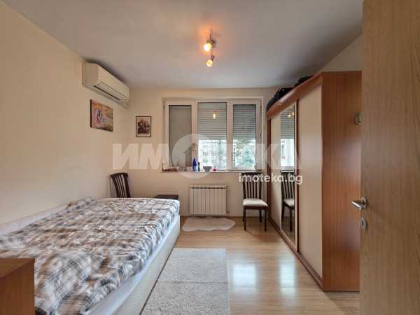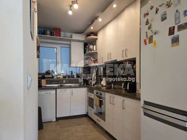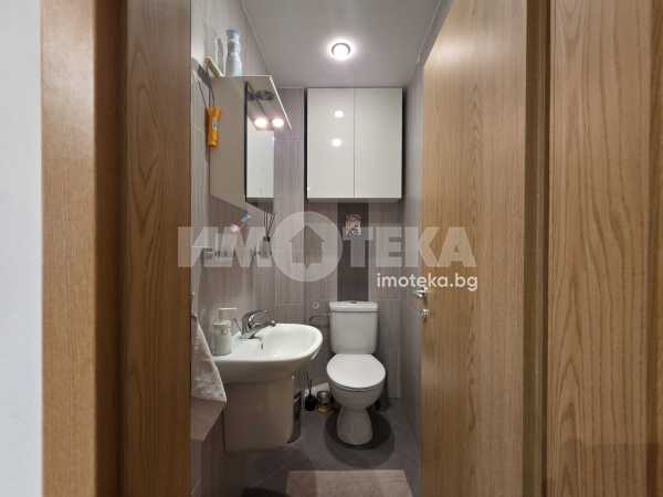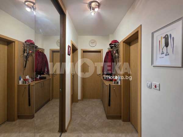 Имота е разпределен с антре, два санитарни възела, дневна с кухня и трапезария ведно и две спални.